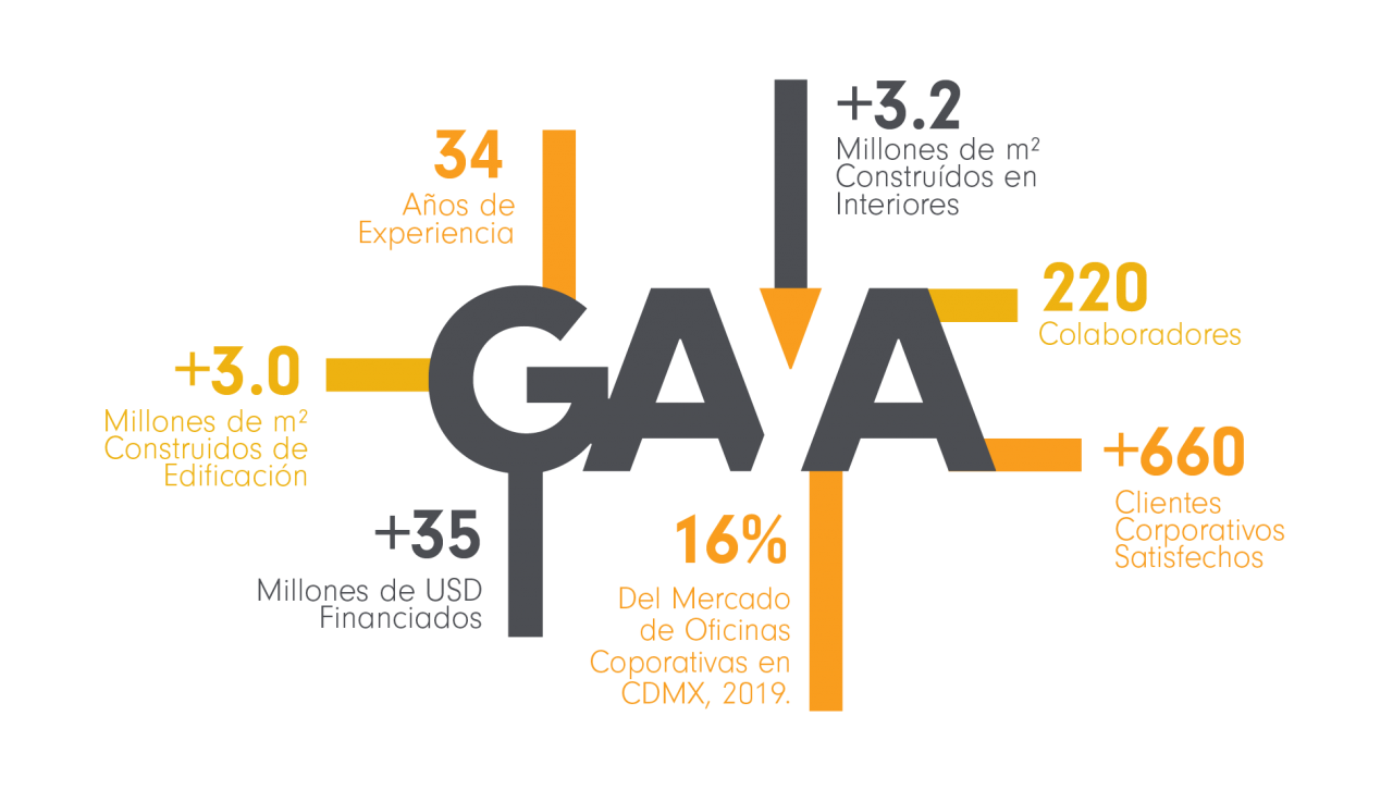 En 2019 se coordinaron más de 55 proyectos, principalmente en el segmento Corporativo, pero también incluyendo a clientes de Retail y Hotelería, tanto en CDMX, como en Monterrey, Guadalajara y algunos destinos de playa. Entre esos proyectos, destacan obras para Globant, Air Canada, Daimler y Metlife, que contribuyen a los más de 3.2 millones de m2 construidos por GAYA desde su inicio de operaciones, hace 34 años. Con estos resultados, GAYA mantiene una participación aproximada del 16% en el mercado de Interiores Corporativos de la Ciudad de México.