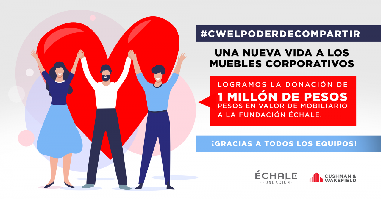 Cushman & Wakefield, a través del área de Project and Development Services, gestionó la donación de mobiliario corporativo que realizó la empresa Chep a la Fundación Échale. Con esta acción, la organización sin fines de lucro podrá llevar a cabo sus actividades de autoproducción asistida en Morelos y hará posible el funcionamiento de un Centro de Atención a Damnificados por el sismo ocurrido el #7S.