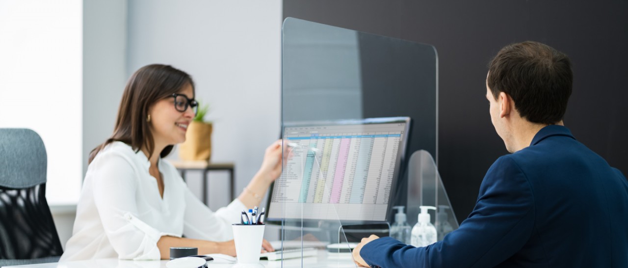 1.- Redistribución y división de espacios: La medida de seguridad principal es el distanciamiento físico por lo que se recomienda separar los escritorios operativos y mesas de trabajo, colocando además entre ellos una barrera de acrílico como mamparas divisorias para evitar el contacto físico y disminuir la posibilidad de la transmisión del virus por la saliva al hablar. El rediseño de los espacios de trabajo es fundamental aún con la existencia de vacunas contra el COVID-19 para mantener la sana distancia.