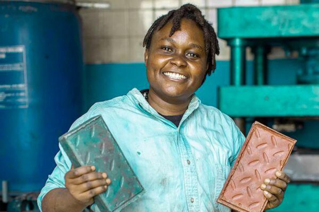 Con una producción de mil quinientos ladrillos al día la empresa Gjenge Makers desarrollada por la ingeniera de materiales Nzambi Matee, aprovecha los residuos de plásticos de las fabricas de Kenia, África para crear ladrillos sustentables y eco friendly.Gjenge Makeer se ubica en Nairoibi, capital de Kenia y desde su inauguración en 2017, ha reciclado veinte toneladas de residuos de plástico empleando el método y proceso creado por Matee.