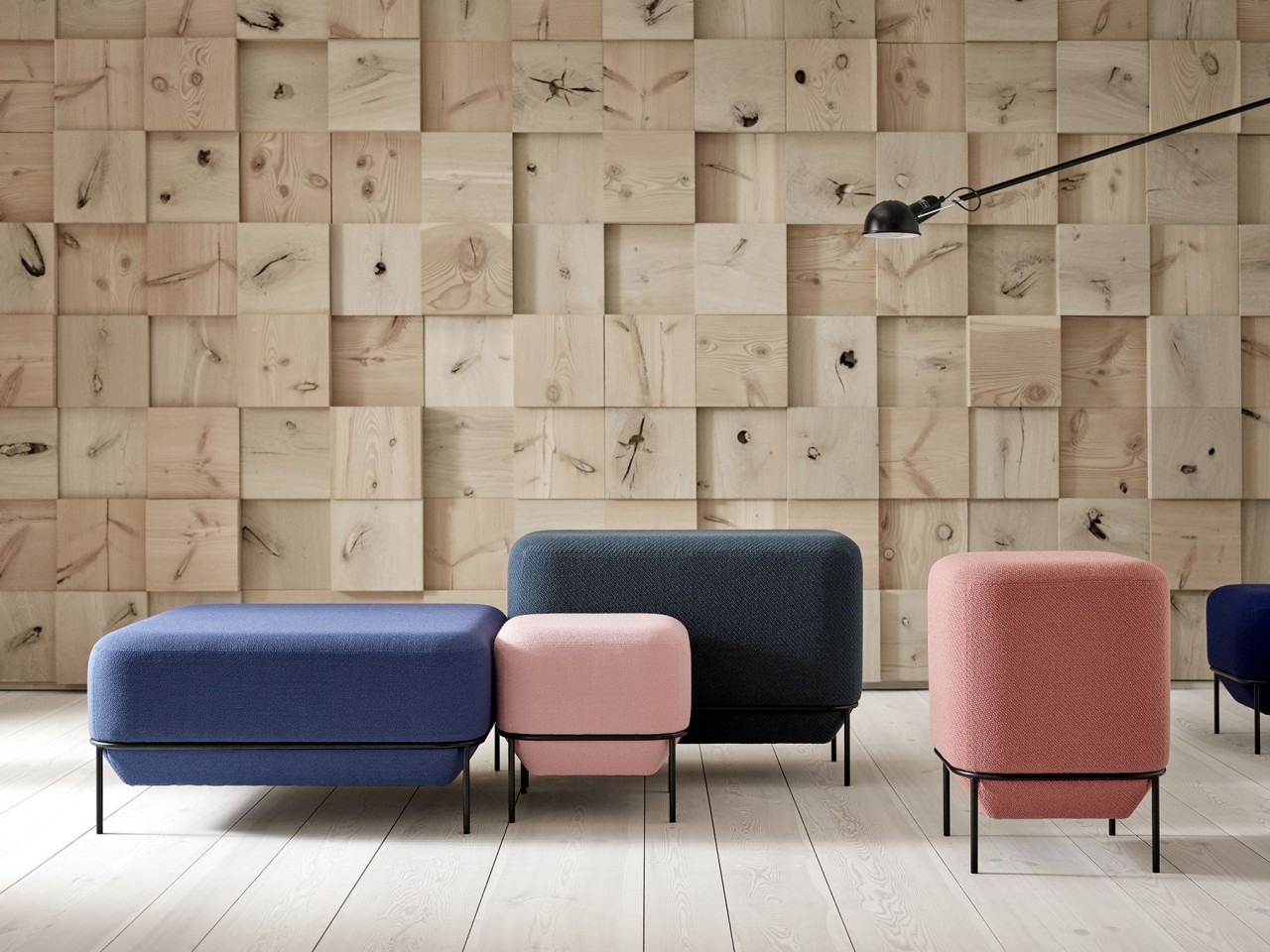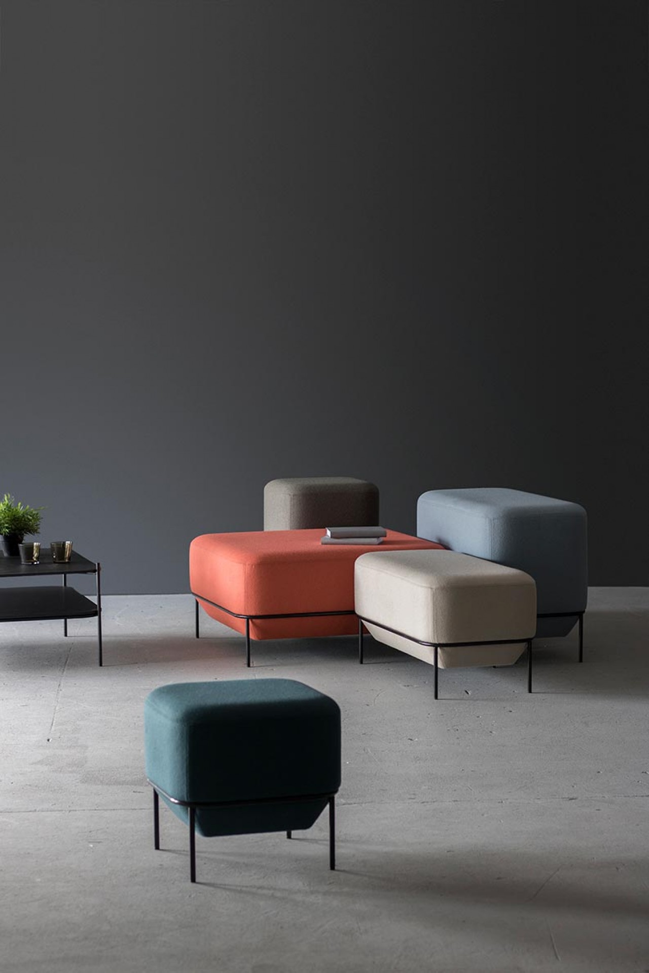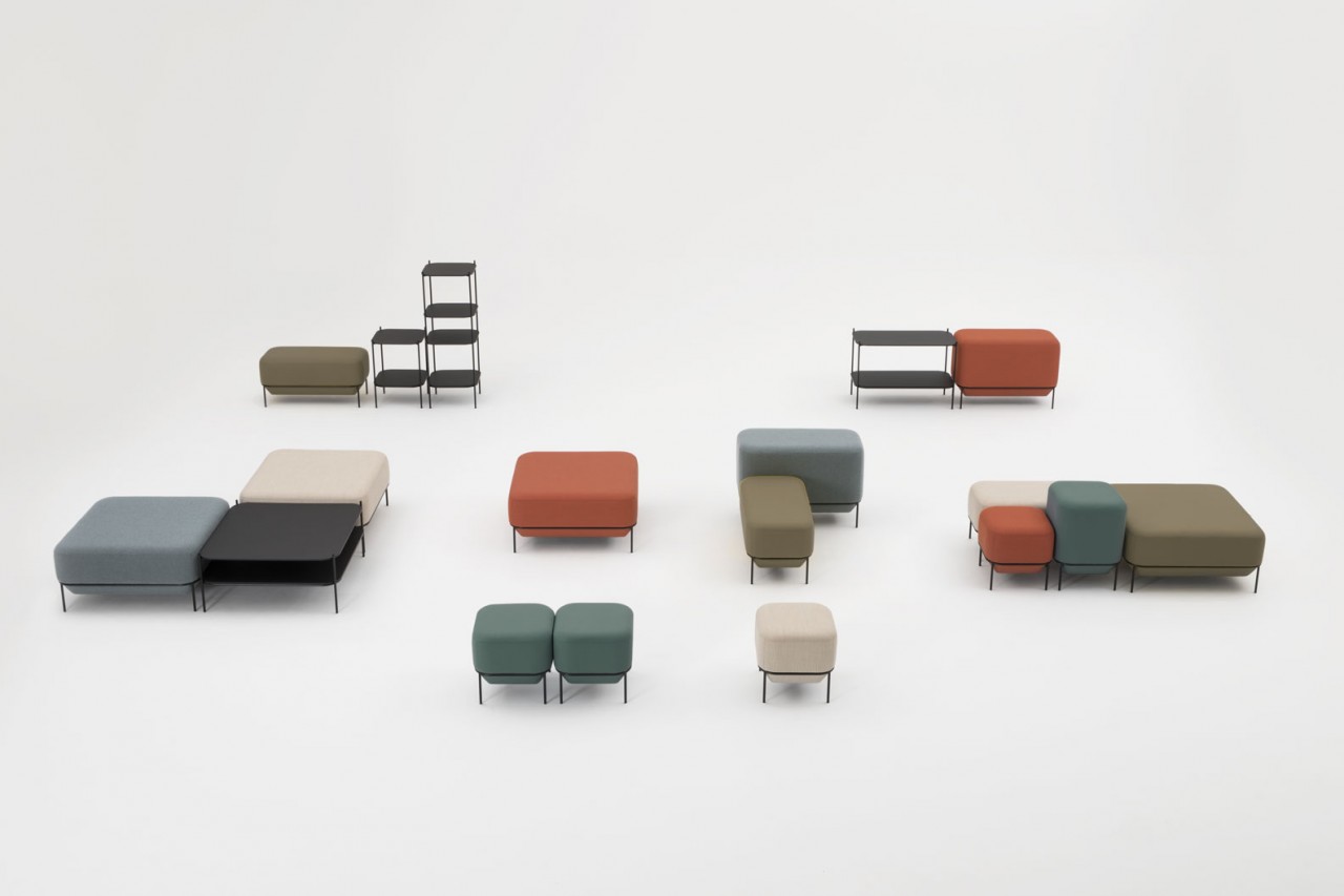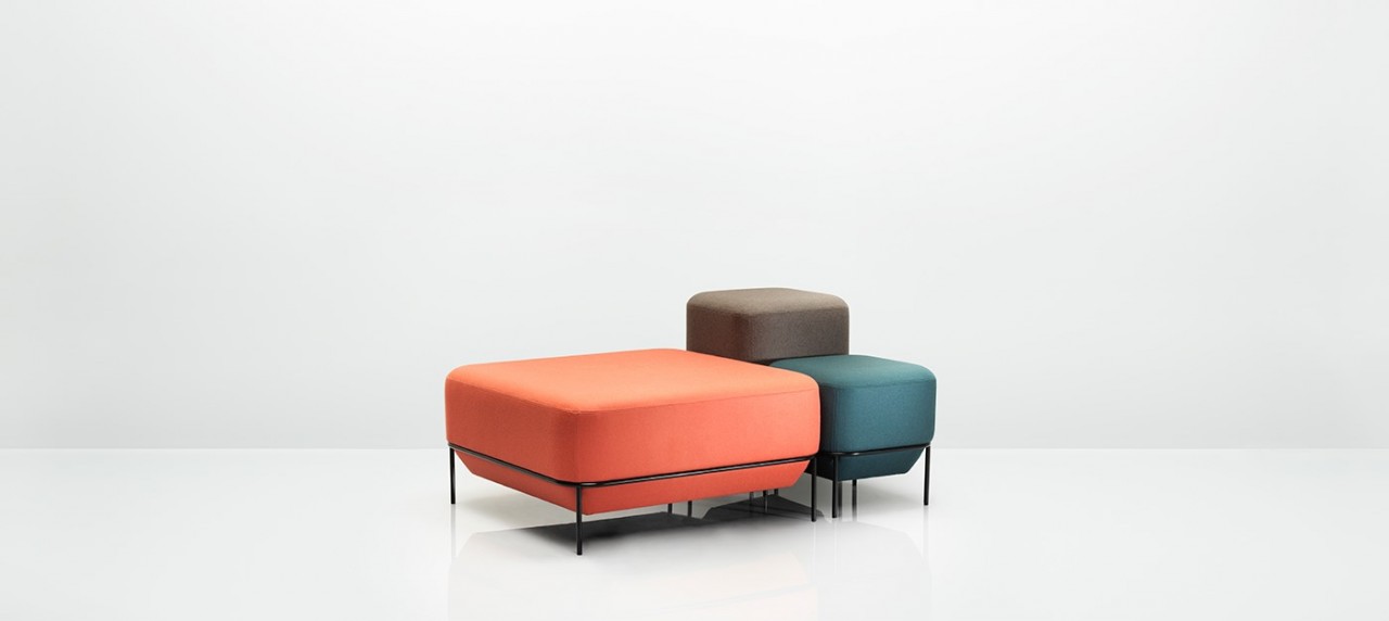 La familia de asientos Mozaik se compone de tres formas principales. Un pequeño taburete cuadrado suave y un banco rectangular suave disponibles en dos alturas y un taburete cuadrado grande, blando y bajo. Las dos alturas de la unidad tapizada permiten diferentes estilos de asientos que a su vez facilitan diferentes patrones de comportamiento, función e interacción.