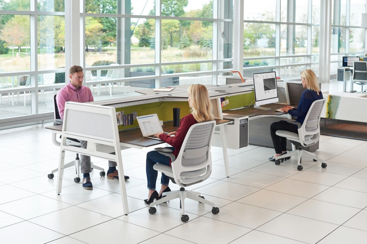 Bivi incorpora una variedad de posturas y proporciona privacidad y ergonomía en el lugar de trabajo con el giro de una sola herramienta. Su diseño orientado a la visión ofrece opciones de estar sentado, de pie y de salón en una sola colección, para que pueda hacer más con menos.