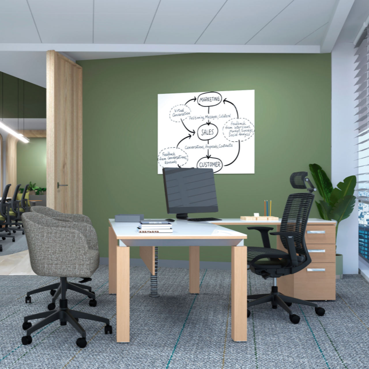 Es una línea que define el gusto por la simplicidad donde tu oficina puede adaptarse fácilmente al constante movimiento.