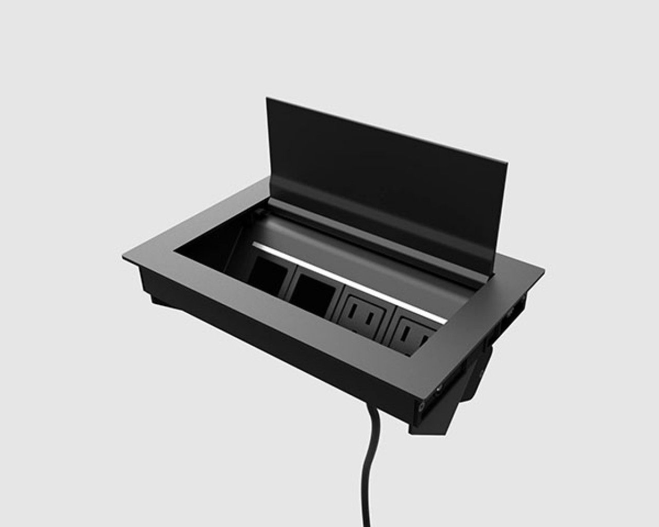 Ellora B es el corazón de toda sala de juntas. En cualquier reunión de trabajo todos querrán estar cerca. Ellora B está disponible desde 4 a 6 puertos con suficiente energía y puertos de datos para albergar las necesidades de tu equipo. Todo protegido bajo la tapa manual que permite seguirlo usando aunque esté cerrado.