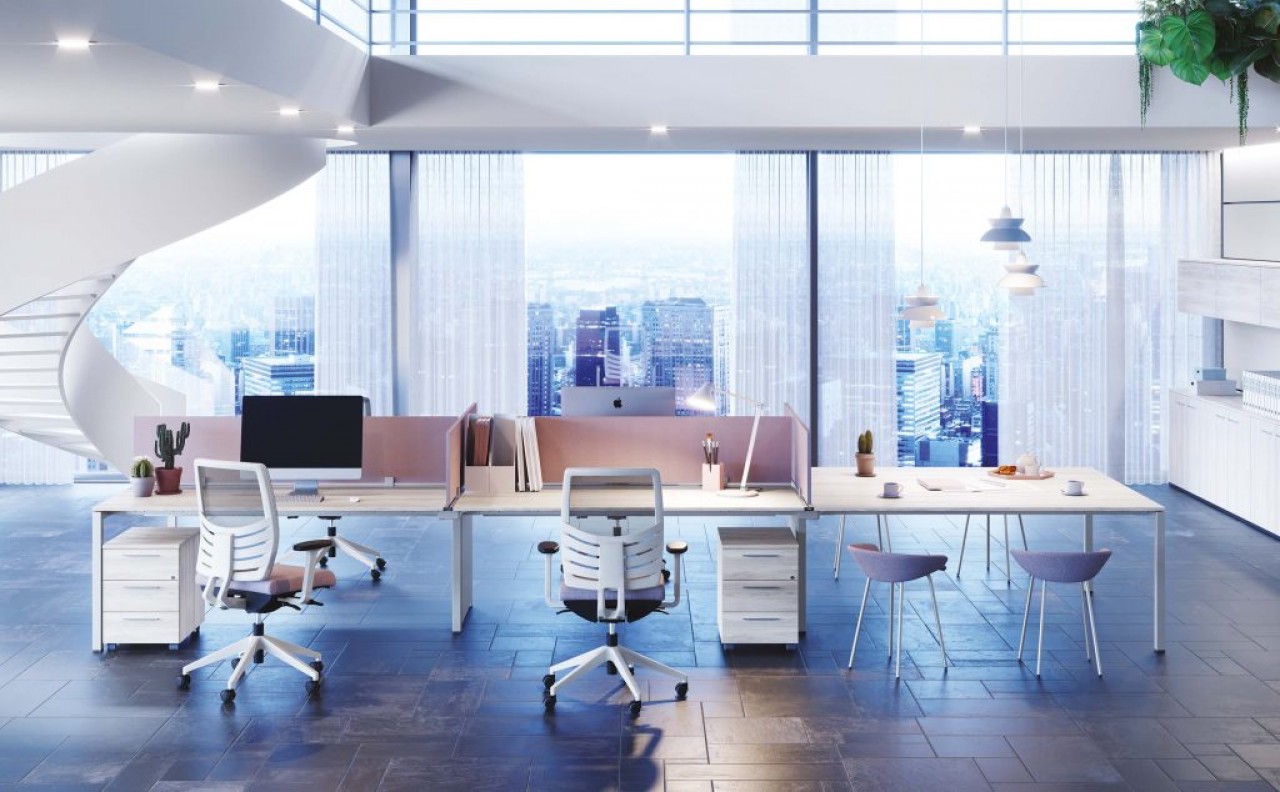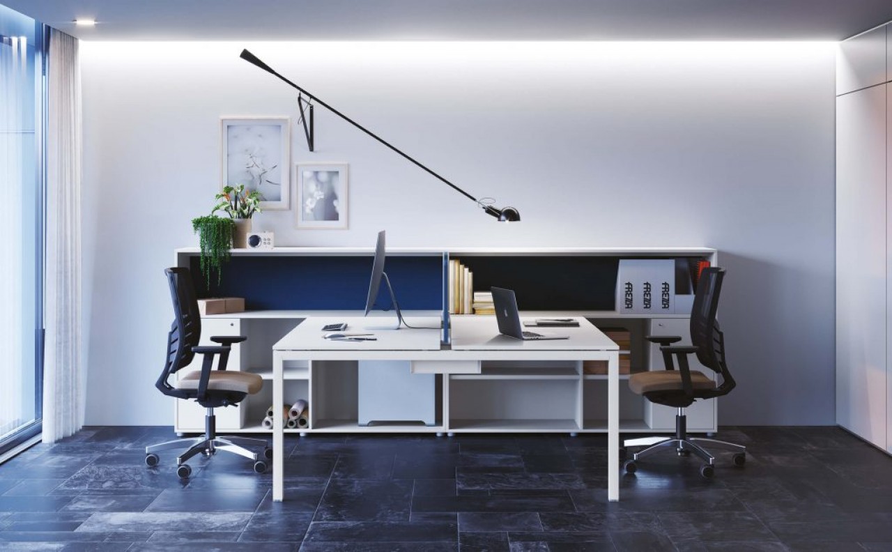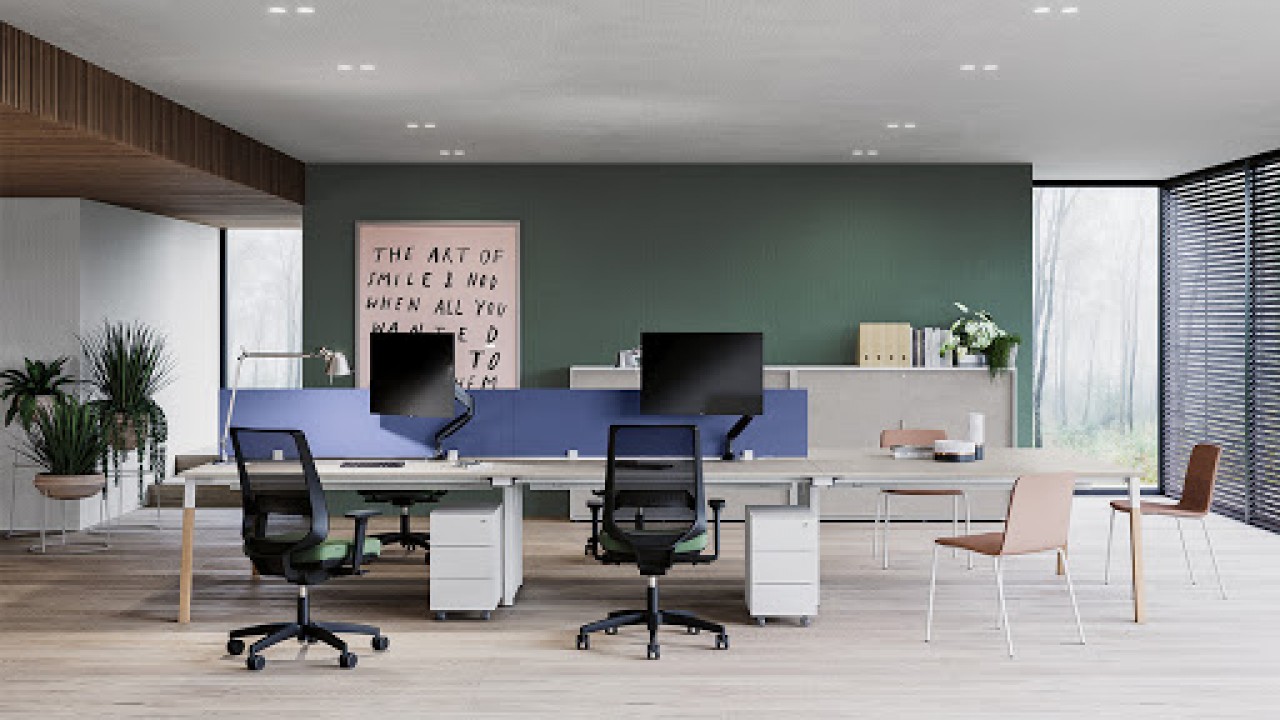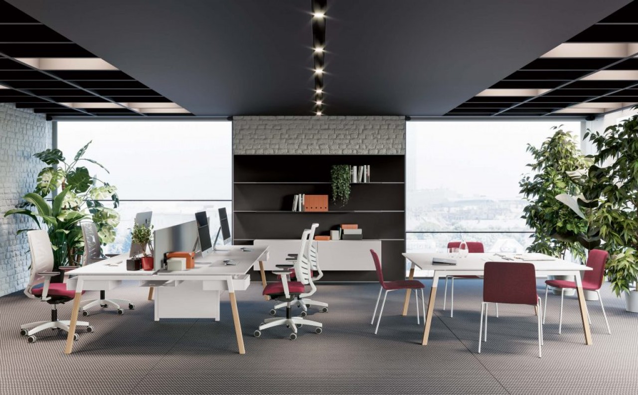 UN PROGRAMA DE PUESTOS DE TRABAJO COMPONIBLES, TRIDIMENSIONALES Y MODULABLES QUE SE ORGANIZA EN DIFERENTES SOLUCIONES PARA EL MOBILIARIO DEL ESPACIO DE LA OFICINA.