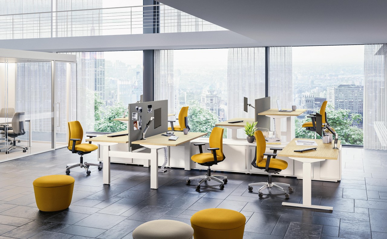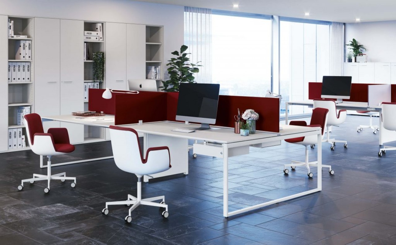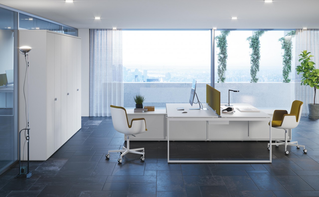 UN PROGRAMA DE PUESTOS DE TRABAJO COMPONIBLES, TRIDIMENSIONALES Y MODULABLES QUE SE ORGANIZA EN DIFERENTES SOLUCIONES PARA EL MOBILIARIO DEL ESPACIO DE LA OFICINA.