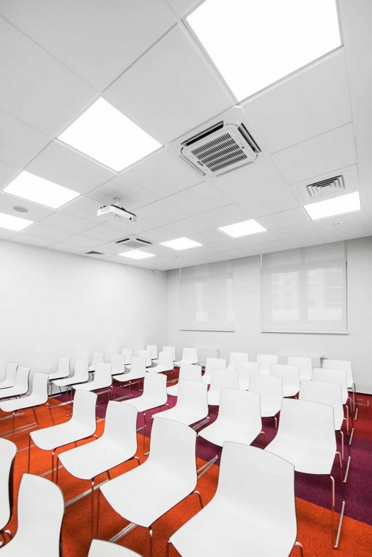 Ecophon Gedina™ es un clásico muy fiable, y una opción excelente cuando los requisitos funcionales son elevados y las posibilidades de diseño limitadas. Gedina cumple con los requisitos funcionales estándar. La superficie visible lleva el revestimiento Akutex™ T, muy duradero, y la parte posterior de las placas va cubierta de tejido de vidrio.