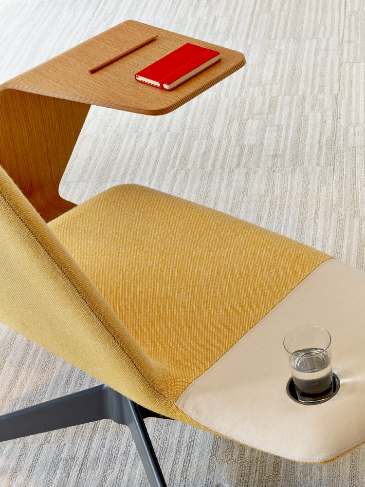 Diseñada para espacios colaborativos o de reunión informal, ya que cuenta con la opción de una paleta retractil, portavasos y base móvil o fija.