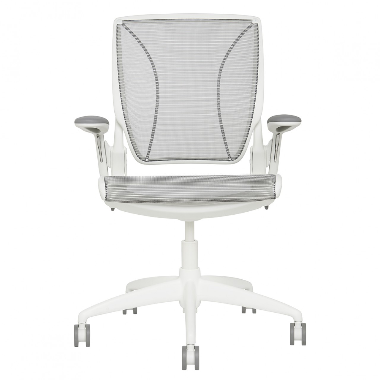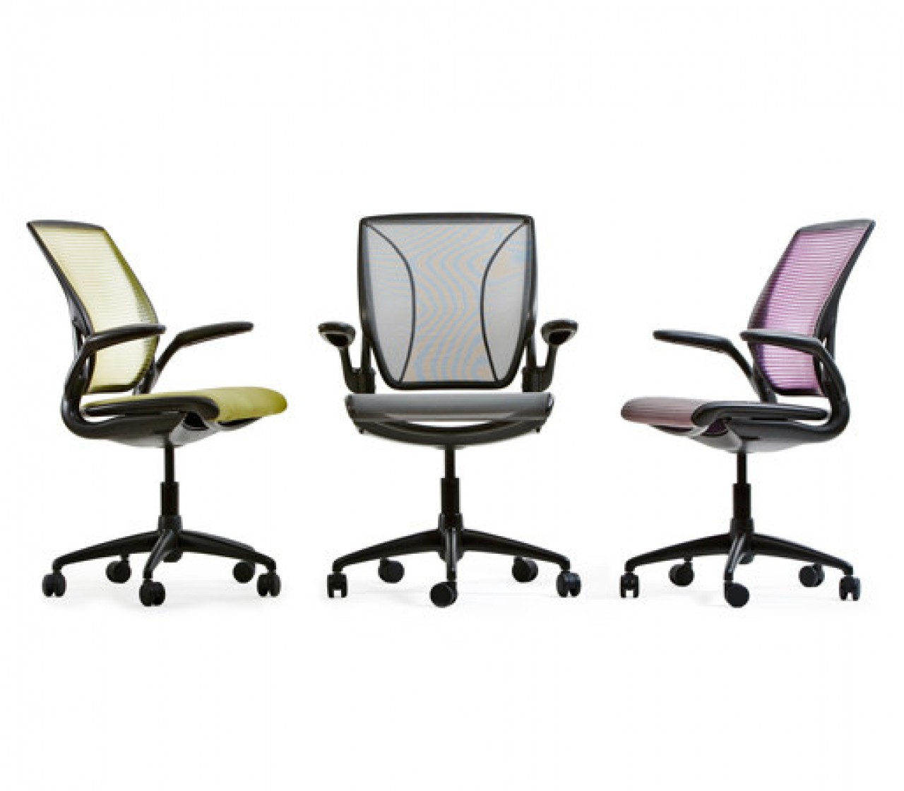 Diffrient World es la primera incursión de Humanscale en los asientos de trabajo completamente de malla. El diseñador Niels Diffrient quiso crear la silla de trabajo más minimalista y totalmente funcional jamás hecha. Con un innovador respaldo de malla de tres paneles que proporciona apoyo personalizado a la espalda y la región lumbar, y un diseño liviano, Diffrient World es, como todos los productos de Humanscale, sencilla, hermosa y funcional. El diseño elimina la necesidad de mecanismos tradicionales, usando en su lugar las leyes de la física y el peso corporal de la persona que se sienta para ofrecer una reclinación perfecta para cada persona. Diffrient World ofrece la experiencia definitiva de sentado cómodo y adaptado al usuario.
