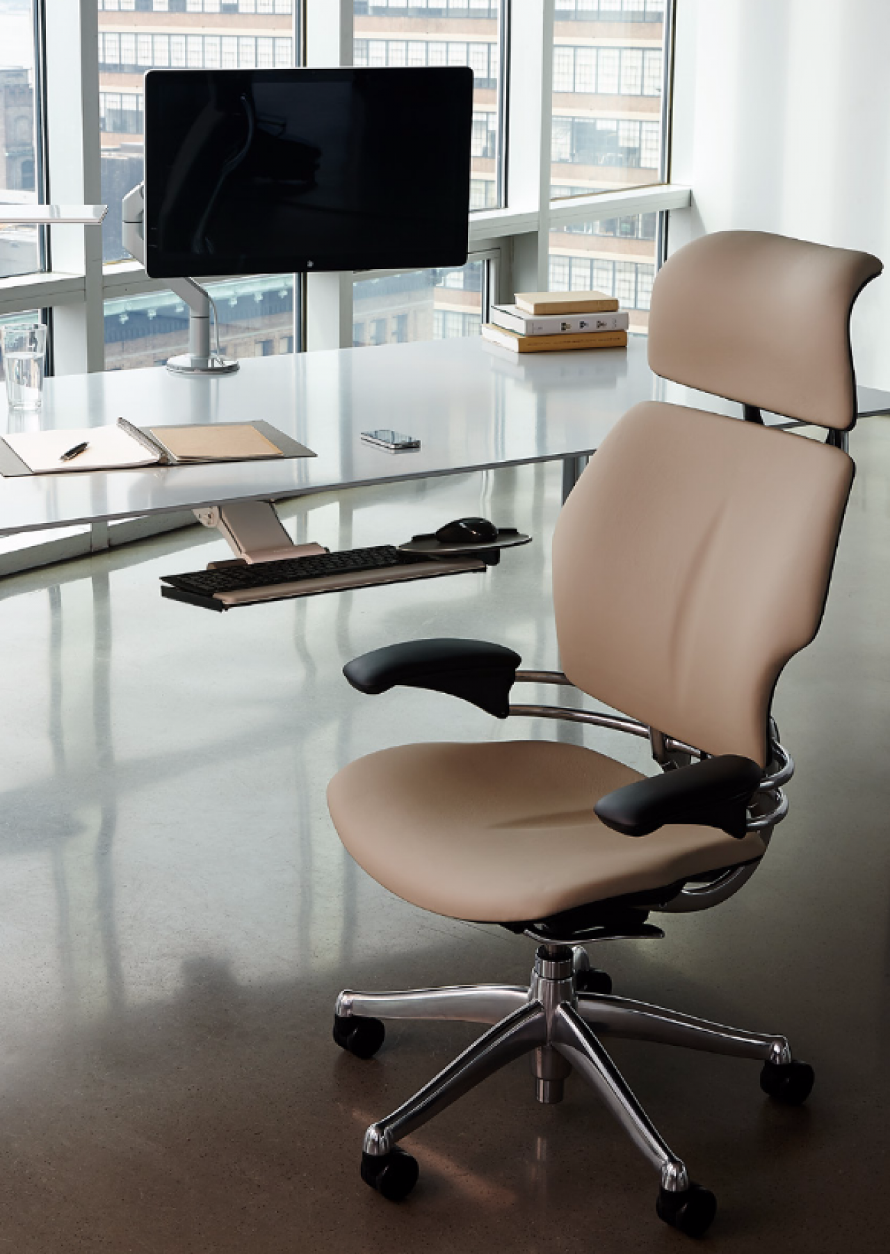 Descrito por The New York Times como "el estándar de oro en los asientos de oficina", la silla Freedom redefine el concepto de sillas de trabajo tradicionales. El diseñador Niels Diffrient tuvo como objetivo diseñar una silla de oficina que se adapte automáticamente al usuario, permitiéndole moverse libremente de una postura a otra. El enfoque único de Diffrient eliminó las complejidades encontradas en otras sillas, como las incómodas palancas de reclinación y los diales de tensión de la espalda para una silla de tareas verdaderamente ergonómica. Como resultado, desarrolló un mecanismo de reclinación que se ajusta perfectamente al usuario, reinventando definitivamente los asientos de tareas modernos para que sean verdaderamente simples, funcionales y hermosos.