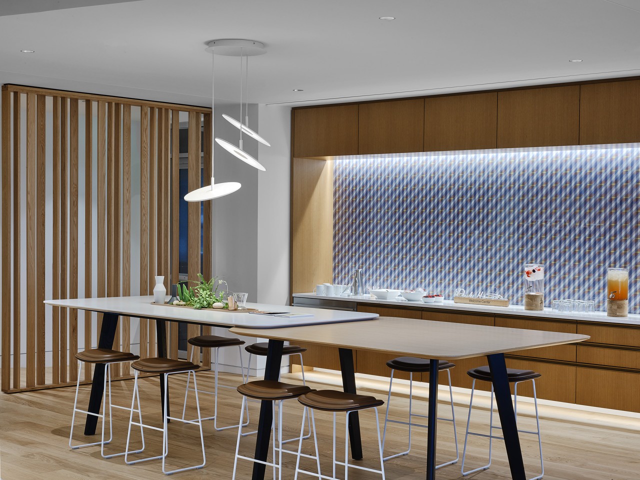 Las mesas colaborativas Immerse fueron diseñada por Haworth en colaboración con Patricia Urquiola como catalizador de la interacción espontánea y creatividad. Las mesas crean un paisaje de superficies variadas, proporcionando un entorno comunitario que transforma experiencias colaborativas y promoviendo el bienestar.