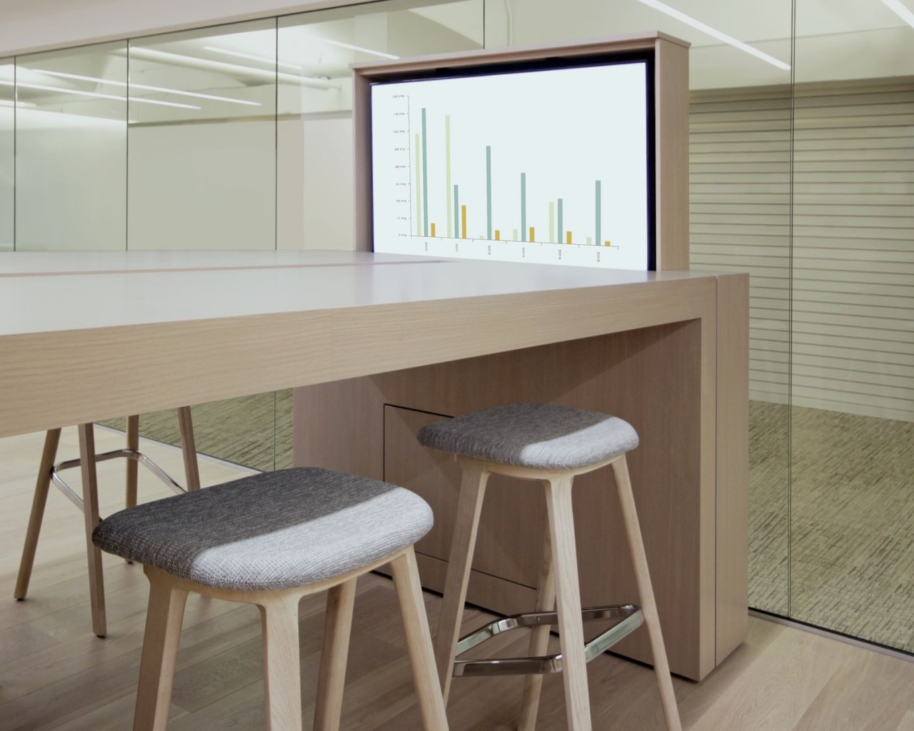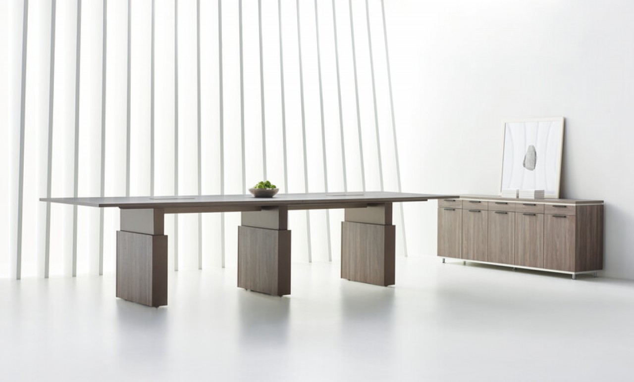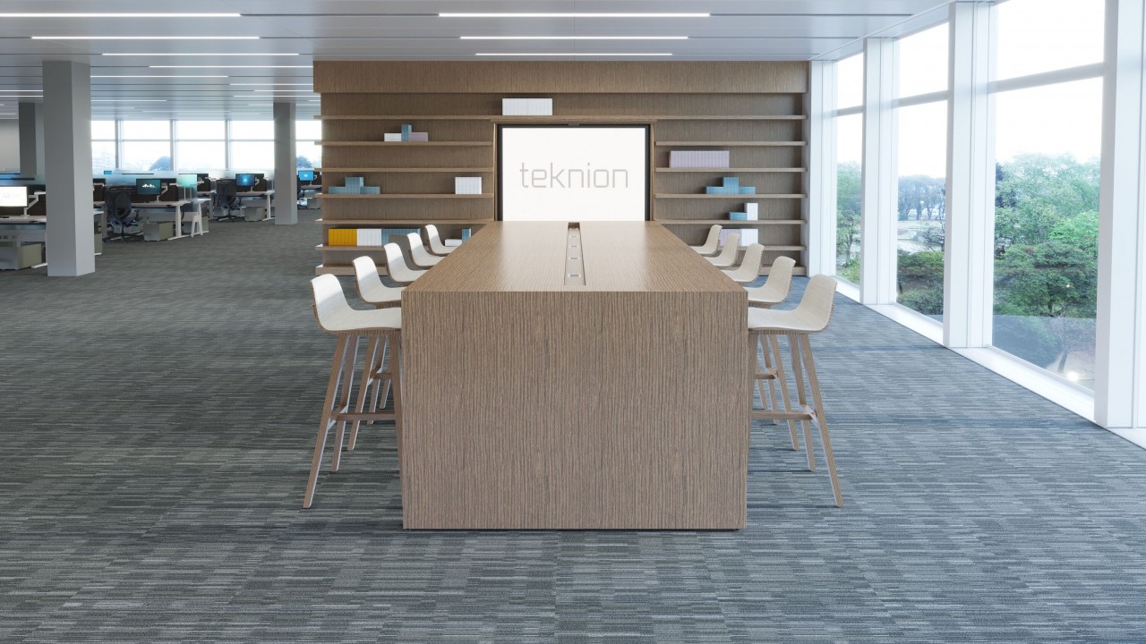 Esta diseñada para estar en sintonía con las necesidades humanas y estilos de trabajo modernos. Un modelo de diseño simple y directo, las proporciones de la mesa la convierten en un punto focal para cualquier espacio, un ancla arquitectónica que invita a la interacción. Las mesas están disponibles en dimensiones personalizadas para cumplir con los requisitos exactos de los clientes y se crean en las instalaciones de Solutions Woodwork de Teknion con su característico alto nivel de detalle.
