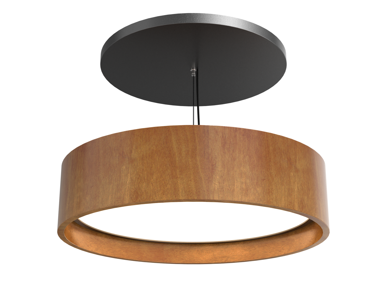Luminario circular para suspender de color gris, posee luz directa con difusor de acrílico. Su tecnología led contiene 3 tabletas de 12w y 2 tabletas de 3w cada una.