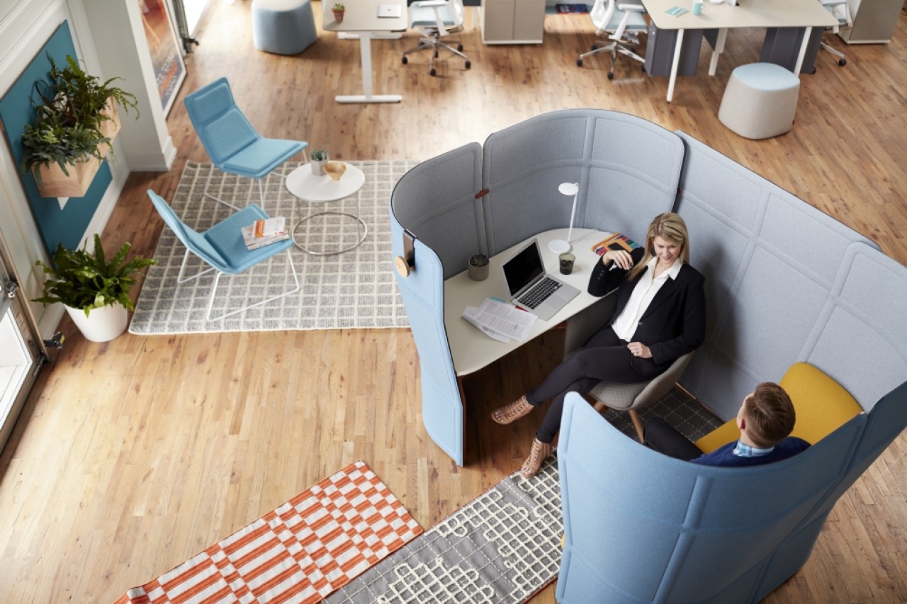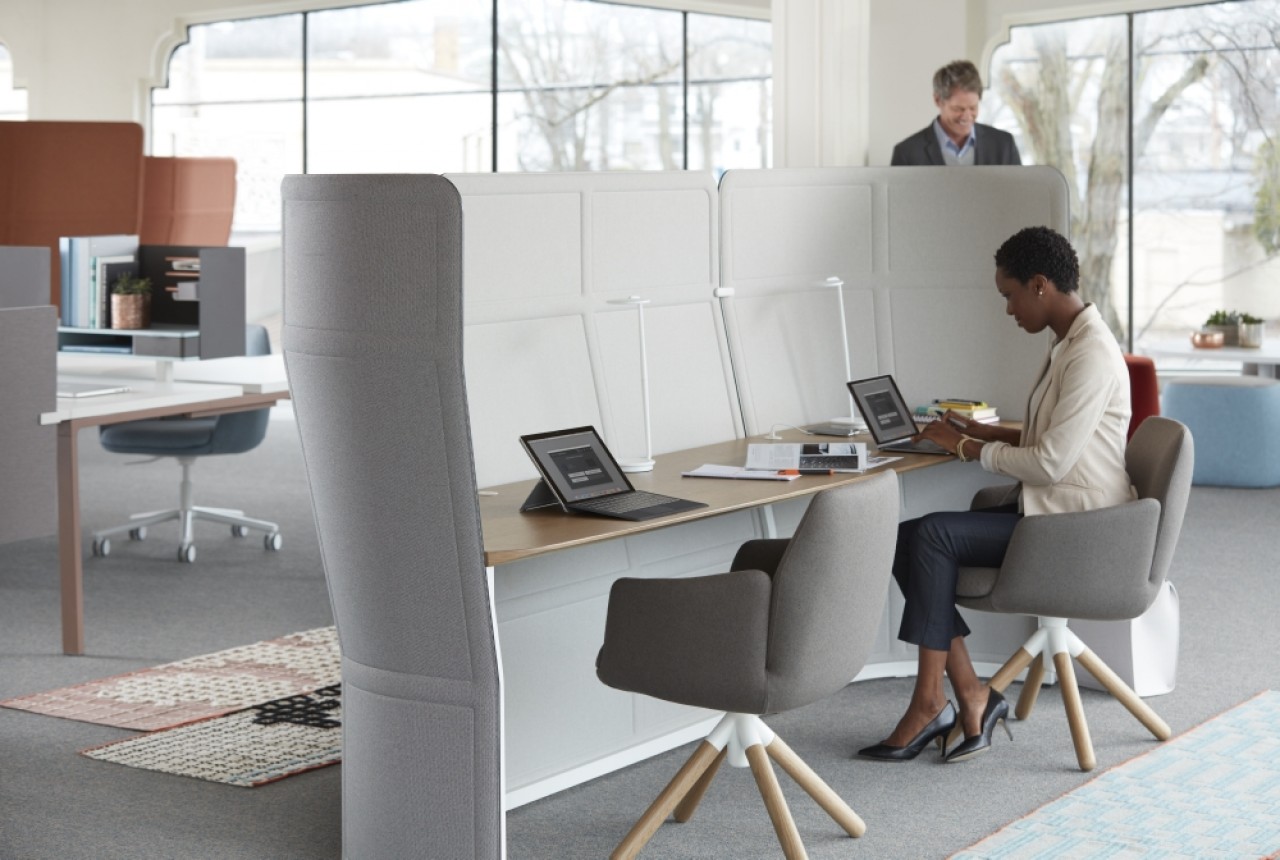 Openest es un conjunto pantallas divisorias y espacios de trabajo tipo cabina destinados a reunirse, compartir ideas, concentrarse en una tarea o simplemente relajarse.