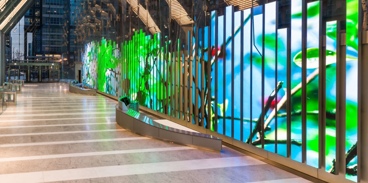 Hemos podido diseñar una gama de «paisajes de ánimo», cada uno creado en tiempo real por algoritmos generativos basados en computadora y diseñados para provocar y mantener un estado psicofisiológico deseable específico que también ayuda a los ocupantes a sentirse menos ansiosos y más felices. El programa puede reaccionar a cualquier tipo de entrada digital, como temperatura, niveles de ruido o métricas de bienestar, y variar las características precisas de su contenido, en vivo, para crear una experiencia perfectamente optimizada.