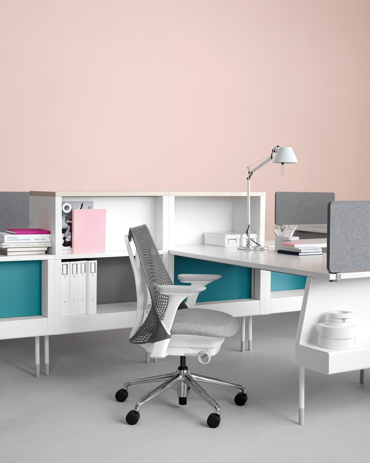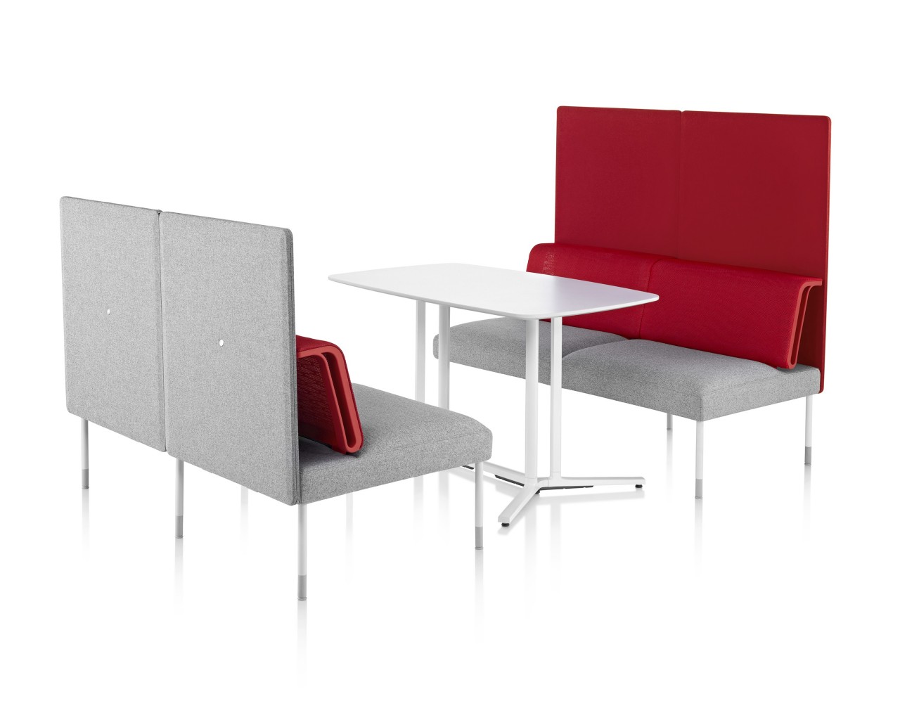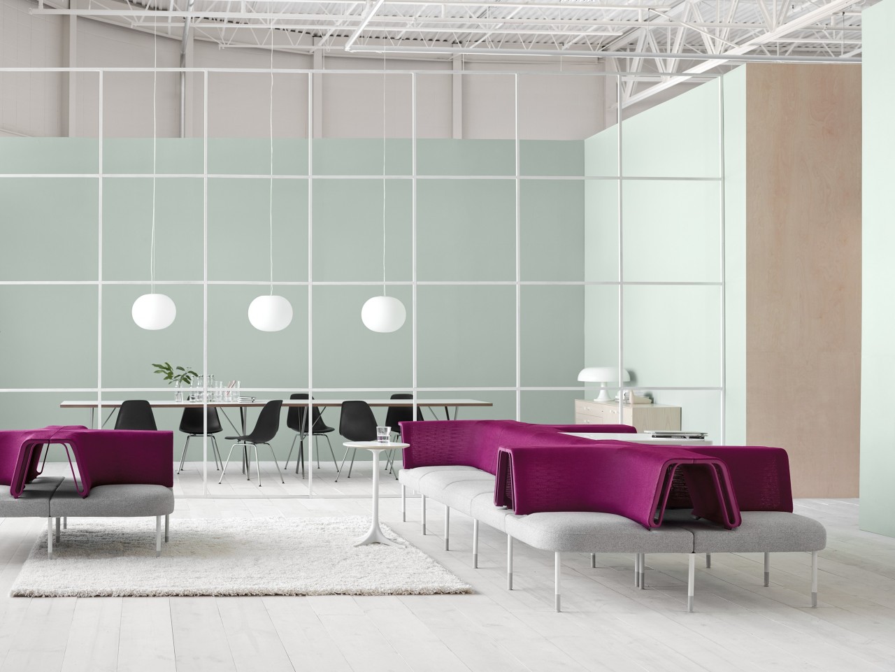 Los elementos del sistema Public pueden organizarse en configuraciones que expresen la cultura y fomenten la pertenencia, y eso puede evolucionar a medida que se necesiten modificaciones. Las capas de color y material crean consistencia visual y mejoran el flujo de movimiento de actividades individuales a actividades grupales, y de espacios privados a compartidos.