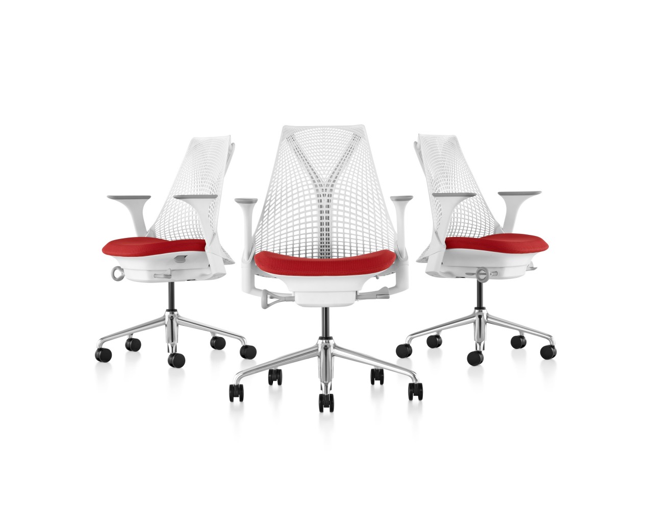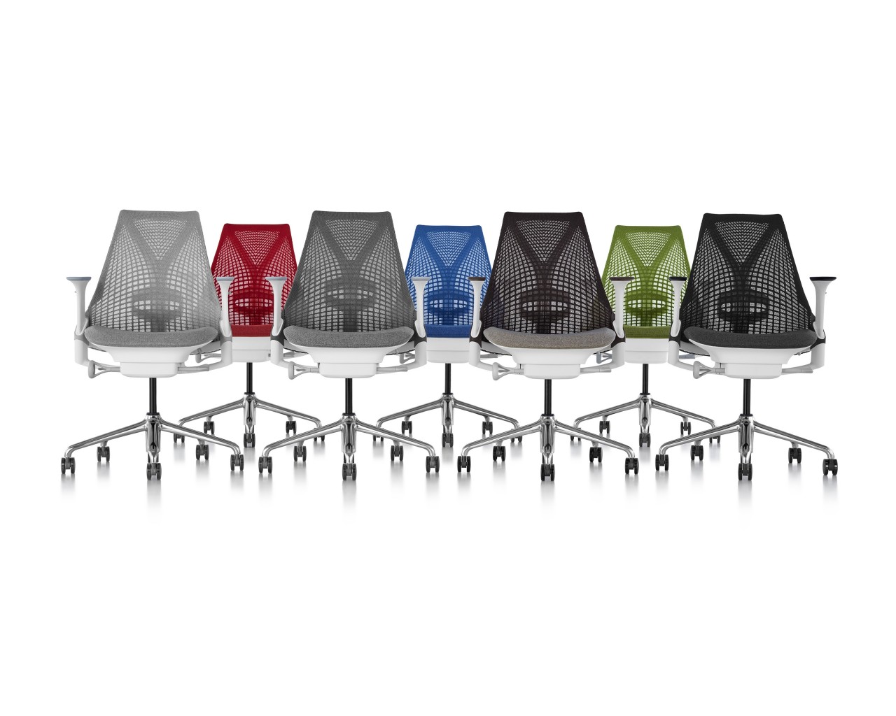 El respaldo sin bastidor 3D Intelligent de Sayl permite al usuario estirarse y moverse, con un equilibrio saludable entre el apoyo y la libertad de movimiento. Los hilos de elastómero del respaldo de suspensión varían en grosor y tensión a fin de ofrecer mayor apoyo a las áreas de transición a lo largo de la columna y menor apoyo en las demás partes del respaldo, para que el usuario pueda hacer una amplia variedad de movimientos mientras permanece sentado.