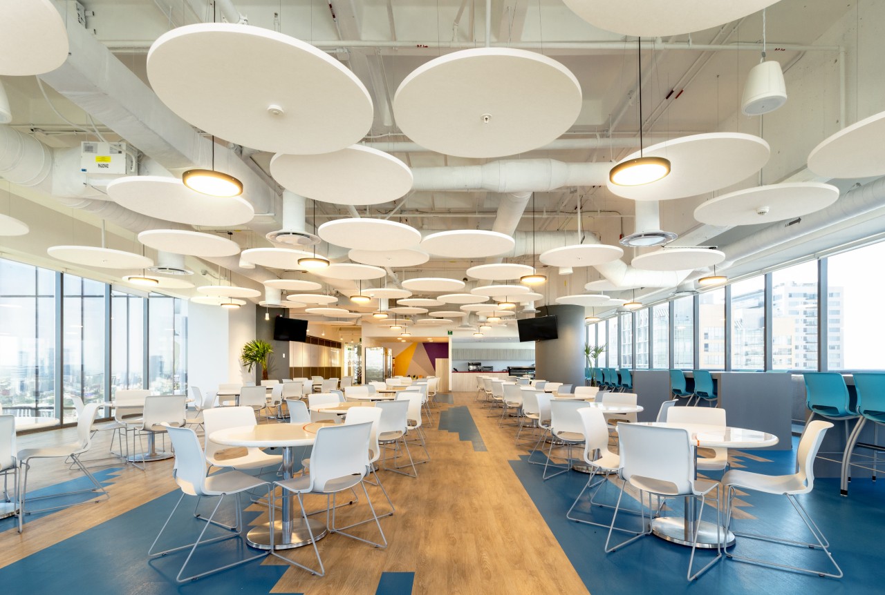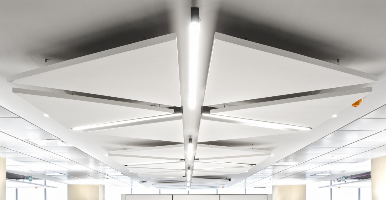 Selecta combina una estética valiente y decidida junto con exigencias acústicas al entorno espacial. OWAconsult - Selecta es una serie exclusiva de absorbentes ligeros de lana mineral con un coeficiente de absorción acústica de αw = 1.