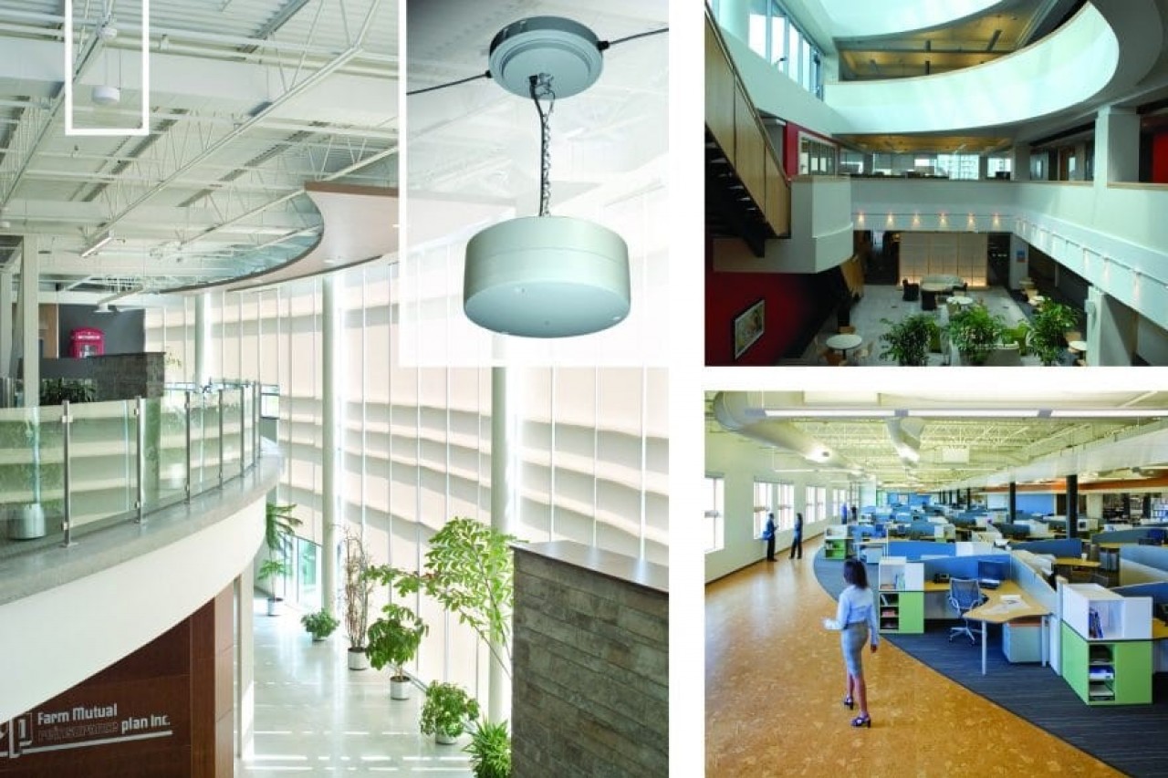 Esta solución permite introducir música ambiental, voceo, accesorio o interfaces para usuarios. Y es integrada por bafles de rango completo con cobertura de hasta 5m2. Además de romper la inteligibilidad de las conversaciones, disminuyendo el estrés generado por el ruido, aumentando la concentración, así como la privacidad y la productividad de cada persona dentro del área de enmascaramiento.