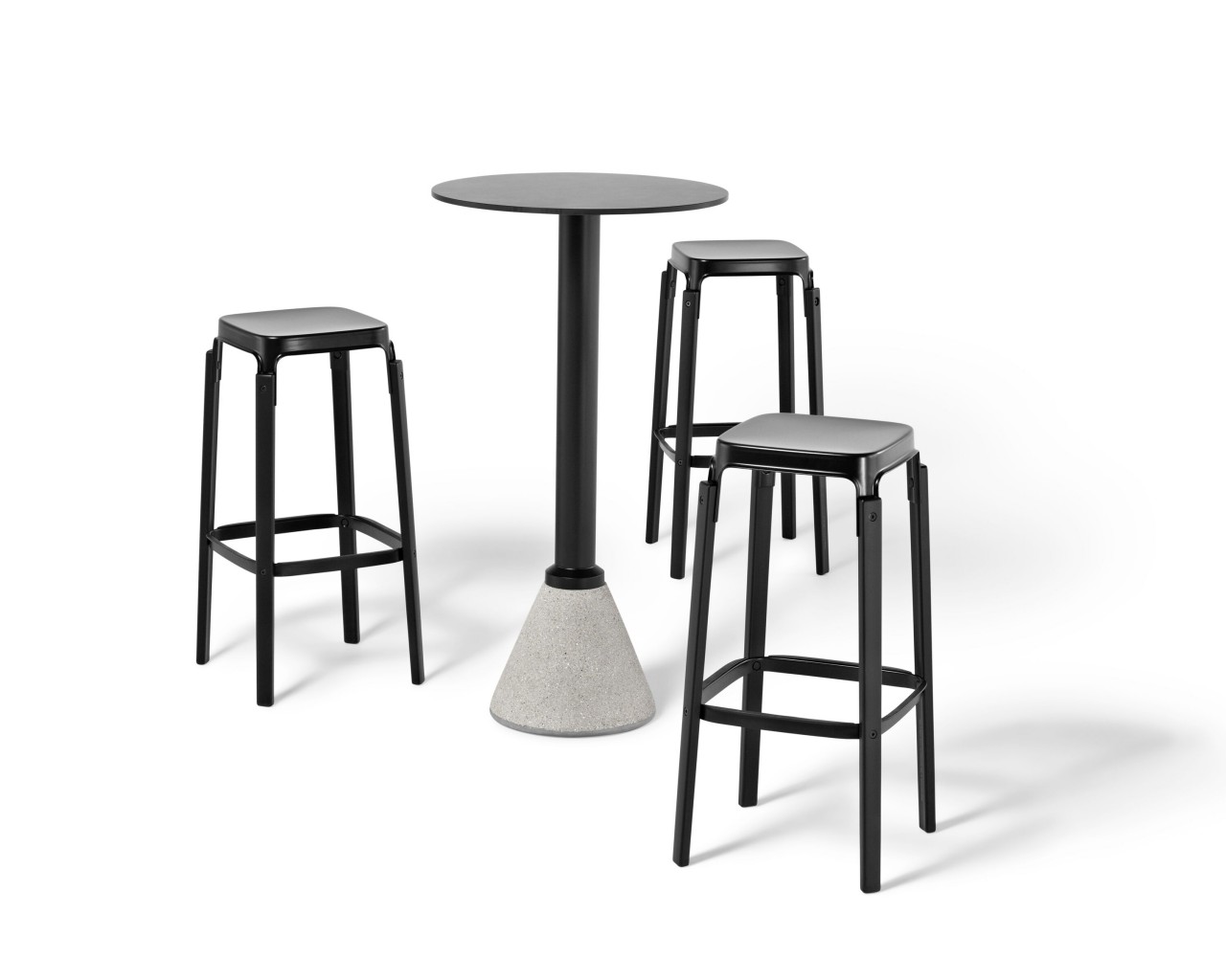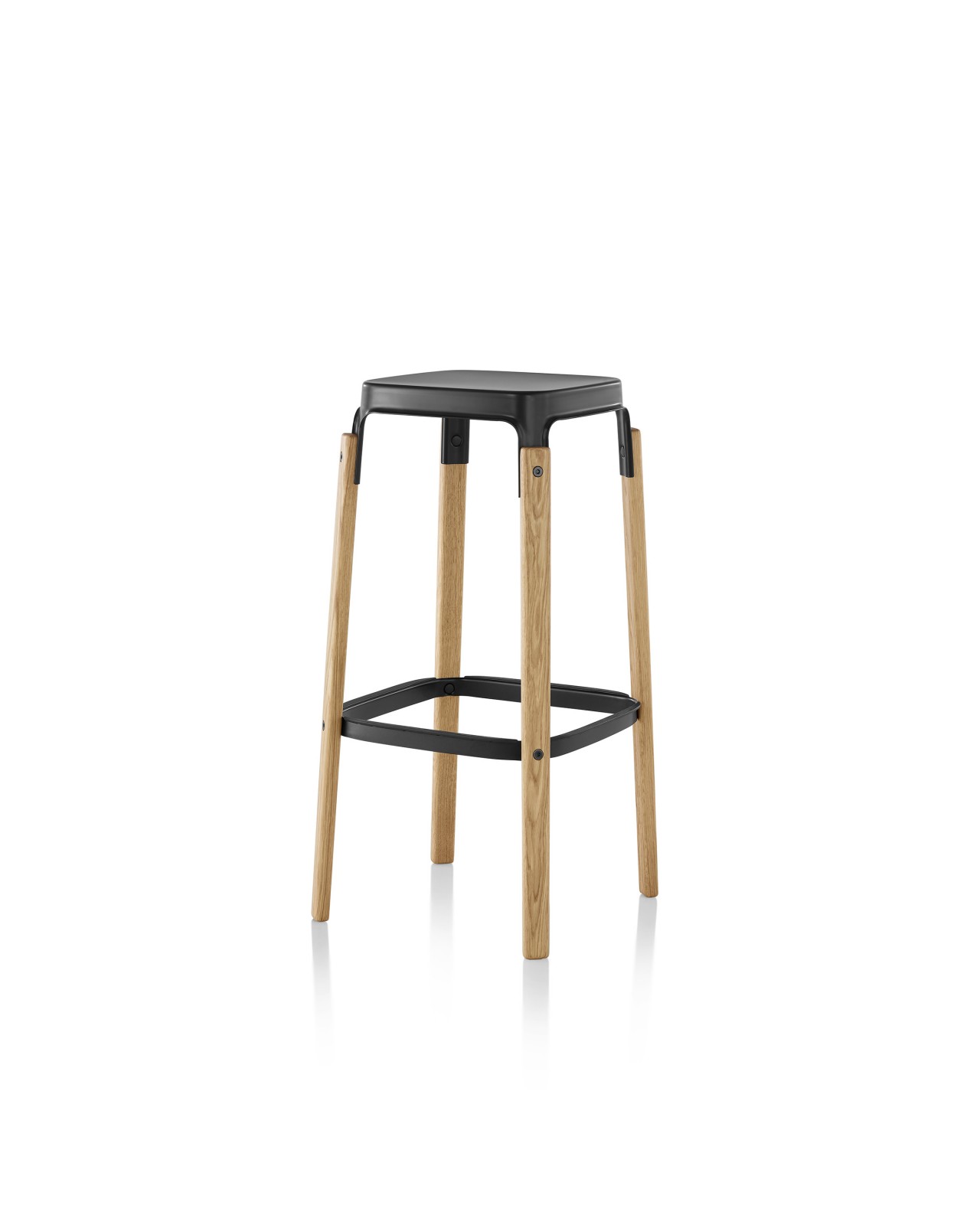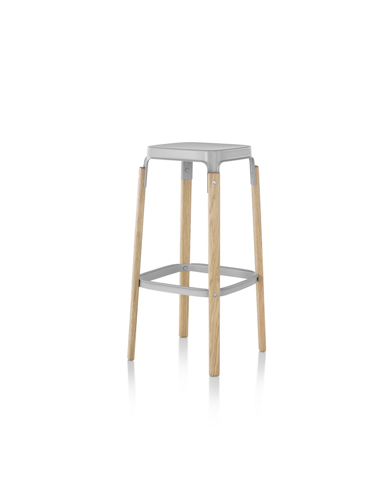 Combina cuidadosamente la calidez de la madera con la solidez del acero. Se encuentra disponible en dos alturas. Se ofrece en diferentes acabados que complementan lo atractivo de esta silla.