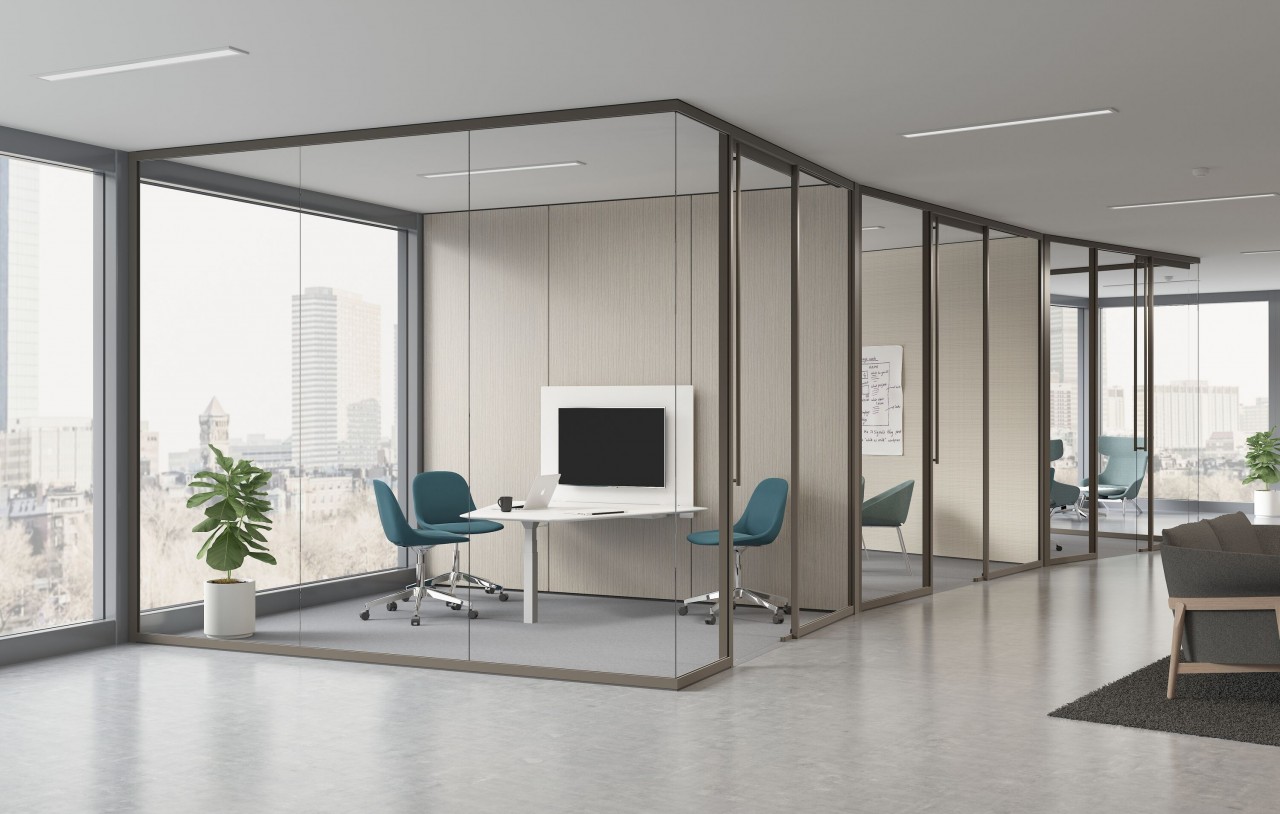 Innovadores sistemas de muros técnicos y cancelería diseñados para lograr una máxima funcionalidad y sostenibilidad mediante: flexibilidad de reconfiguración, privacidad acústica e instalación sencilla.