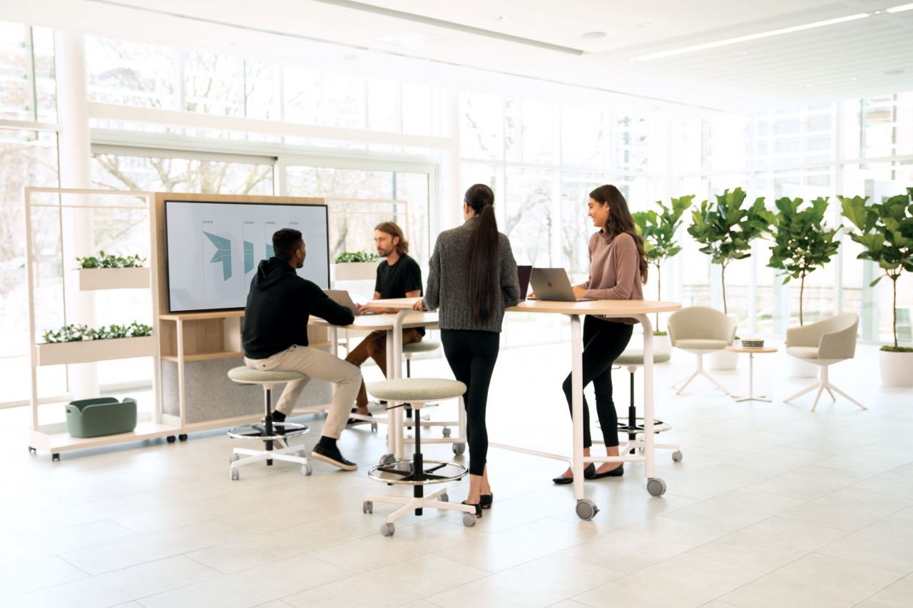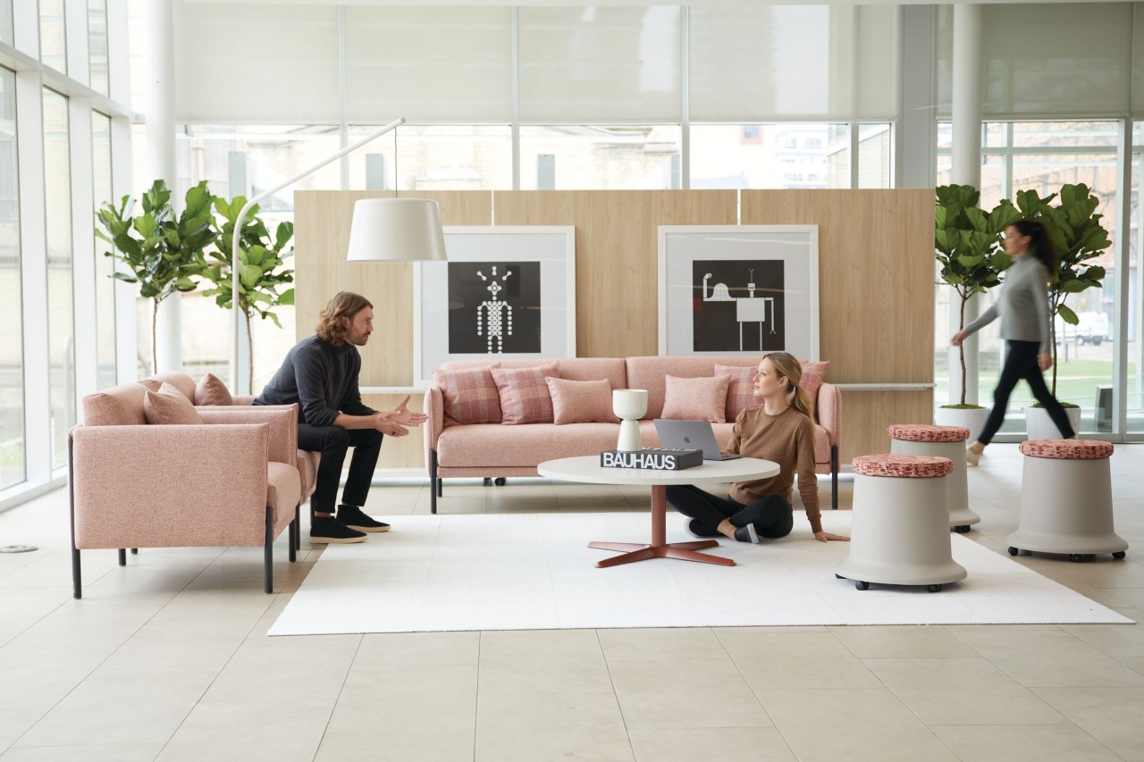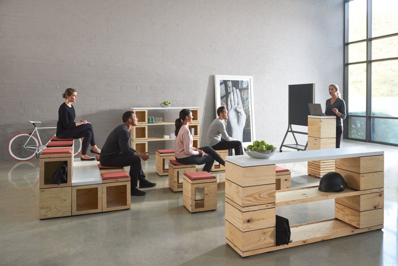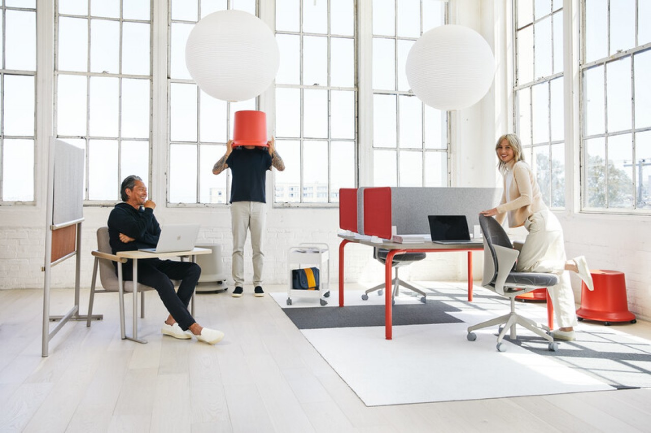 La colección permite construir un espacio de trabajo completo para un estudio pequeño y unido o crear centros de trabajo informales "pop-up" en la extensión de una oficina corporativa.