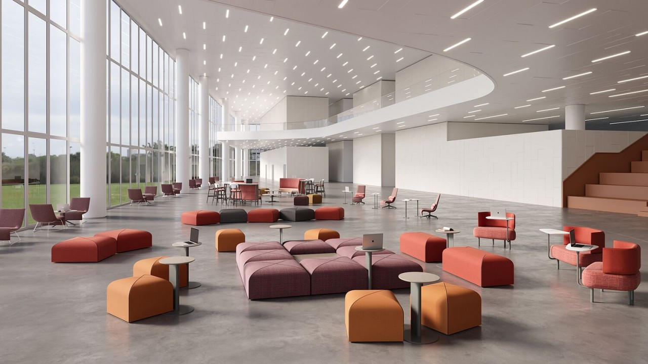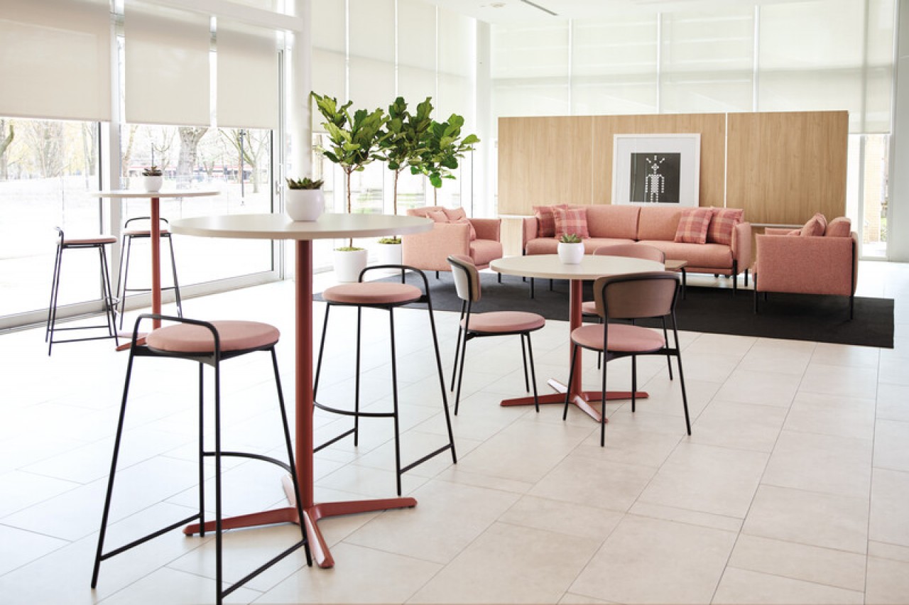 Diseñado para espacios corporativos, educativos y públicos, Banqs se compone de sofás, pantallas, mesas y accesorios que crean asientos lineales, "hubs" y "booths". Se pueden adaptar según se desee para formar espacios de usos múltiples adyacentes a las estaciones de trabajo o como un espacio designado para reuniones, sala de estar o cafetería.