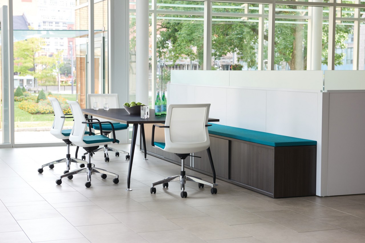 Se pueden usar como sillas auxiliares o informales para reuniones en el entorno de la estación de trabajo o en la oficina privada. Están disponibles con respaldo de malla o tapizado, ruedas o deslizadores y se apilan hasta 4 de alto.