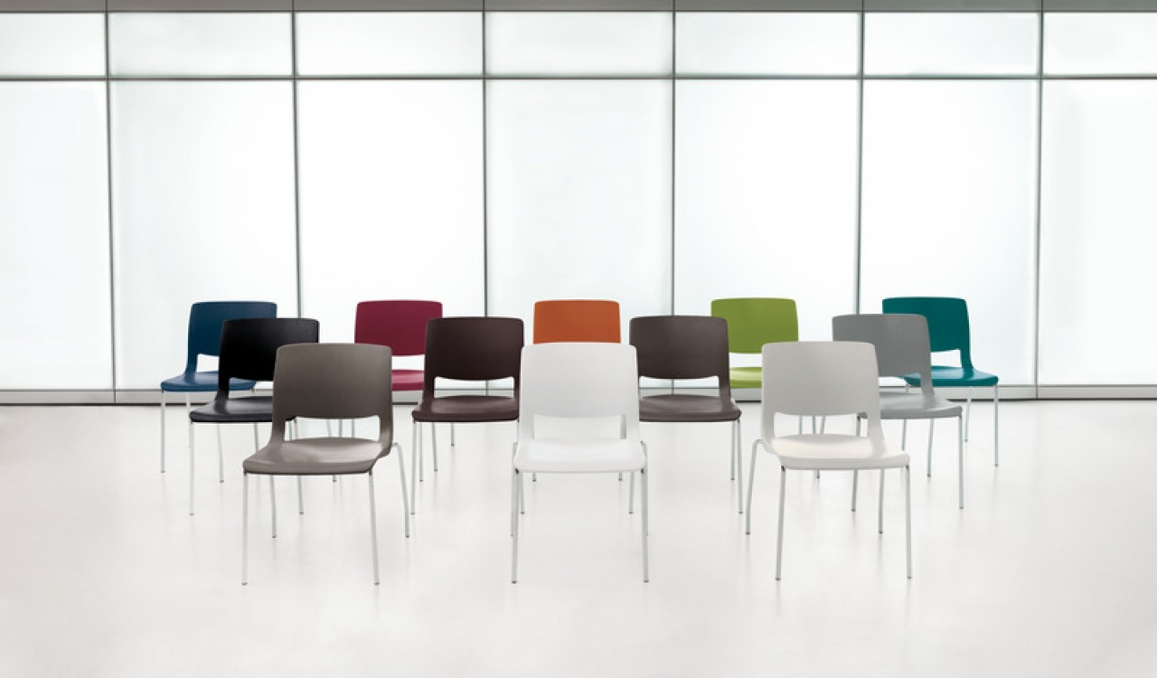 Es una colección de sillas polivalentes informales, perfectas para espacios que van desde cafeterías hasta lugares informales para reuniones, para usar en salas de conferencias. La carcasa de plástico flexible de la silla con forma recortada y diferentes grosores de material garantiza la comodidad.