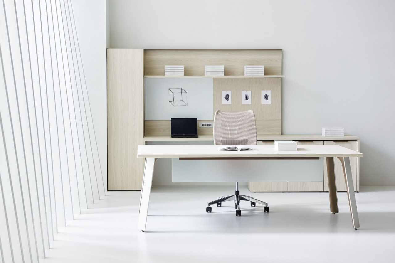 Es una colección de distintos elementos de mobiliario, que aportan una calidad única al espacio de trabajo a través de una paleta de colores de pintura aplicados a la madera. De escala más liviana, es una opción simple pero versátil, muy adecuada para espacios pequeños, permite que se trabaje de manera dinámica y el usuario de hoy se mueva con facilidad, pasando cómodamente de estar sentado a estar de pie.