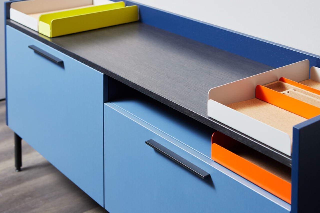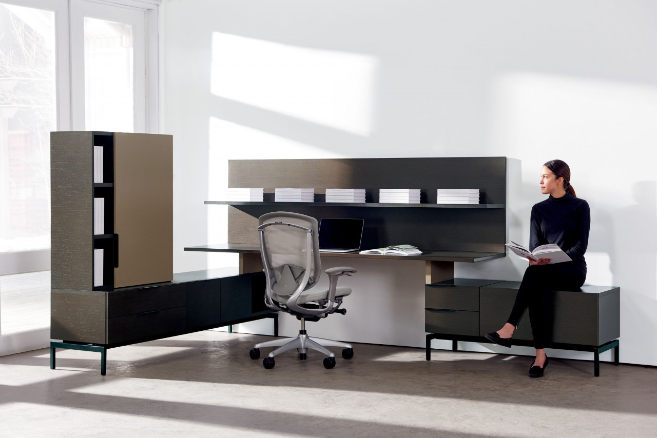 Es un sistema integral de muebles de madera con una estética moderna y refinada diseñado para abordar esta necesidad. Se compone de elementos versátiles a escala residencial que crean un marco para diferentes estilos de trabajo, lo que permite a los usuarios moverse con fluidez entre tareas. Los elementos de gabinetes clásicos de Journal incluyen escritorios, aparadores y gabinetes, almacenamiento independiente y apilable, salidas y retornos.