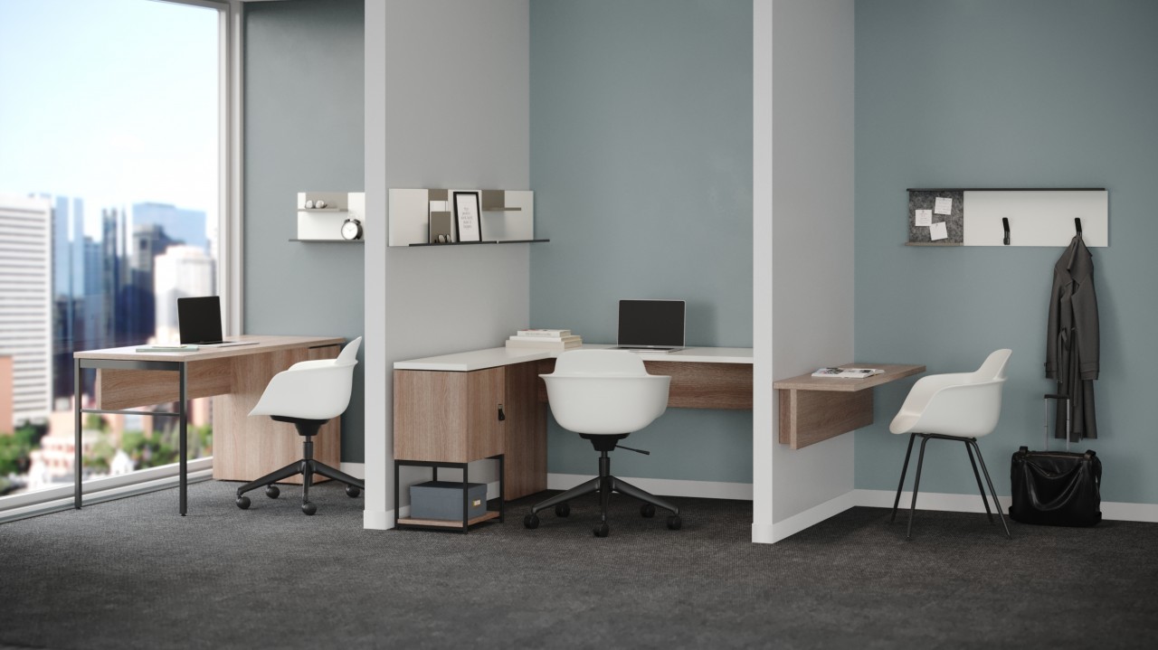 Ofrece una línea distintiva de muebles laminados de precio competitivo adecuados para una amplia gama de aplicaciones independientes y planos integrales de oficina. Una plataforma de productos uniforme simplifica la planificación y mantiene una estética uniforme en toda la oficina.