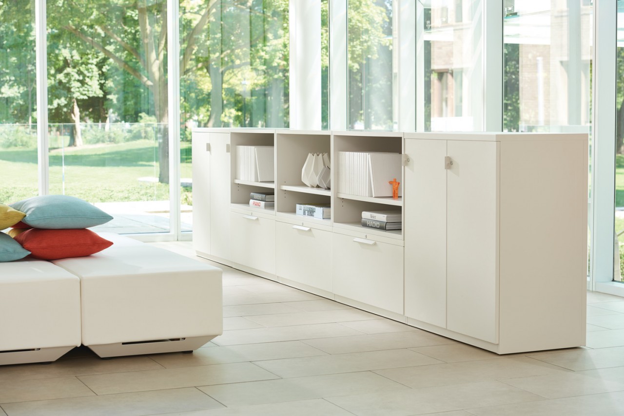 Diseñados para satisfacer diversas necesidades de almacenamiento en toda la oficina, los productos Ledger® son independientes o se integran bien con sistemas y muebles de estaciones de trabajo. Ledger ofrece productos de almacenamiento activo y aquellos adecuados para bancos de archivo de alta densidad. Todos los productos están disponibles preconfigurados o como conjuntos personalizados que se reconfiguran en incrementos de 1,6 pulgadas de altura.