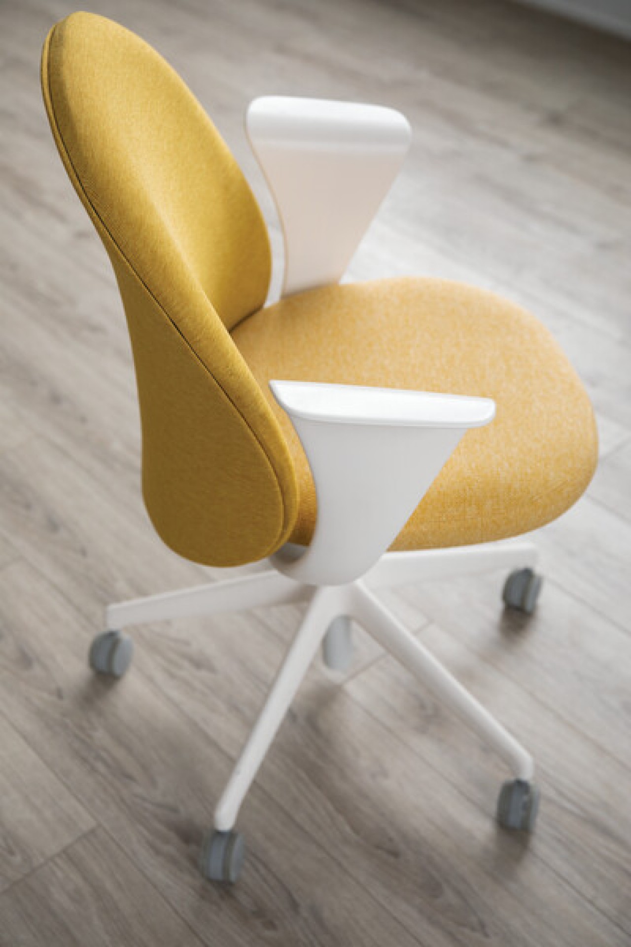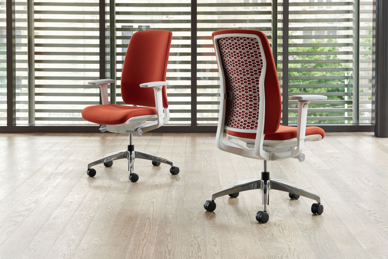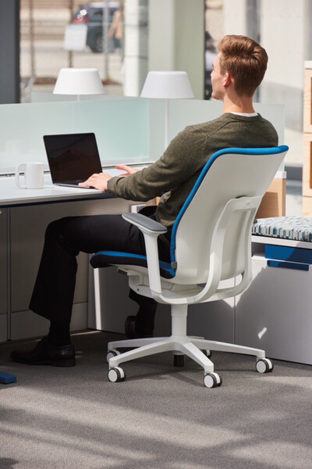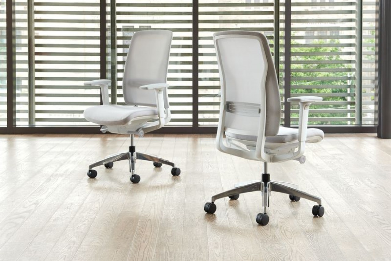 Combina elegancia con ergonomía, brindando la cantidad justa de soporte a través de curvas y contornos en lugar de múltiples mecanismos de ajuste. Al promover los cambios naturales en la posición, es ideal para trabajadores móviles y entornos de trabajo activos. Está disponible con o sin brazos y en tres acabados aplicados para lucir “plenamente”, logrando un acabado casi continuo que mantiene una forma unificada. Los acabados de los marcos incluyen Atrium White, Clay y Blackstone.