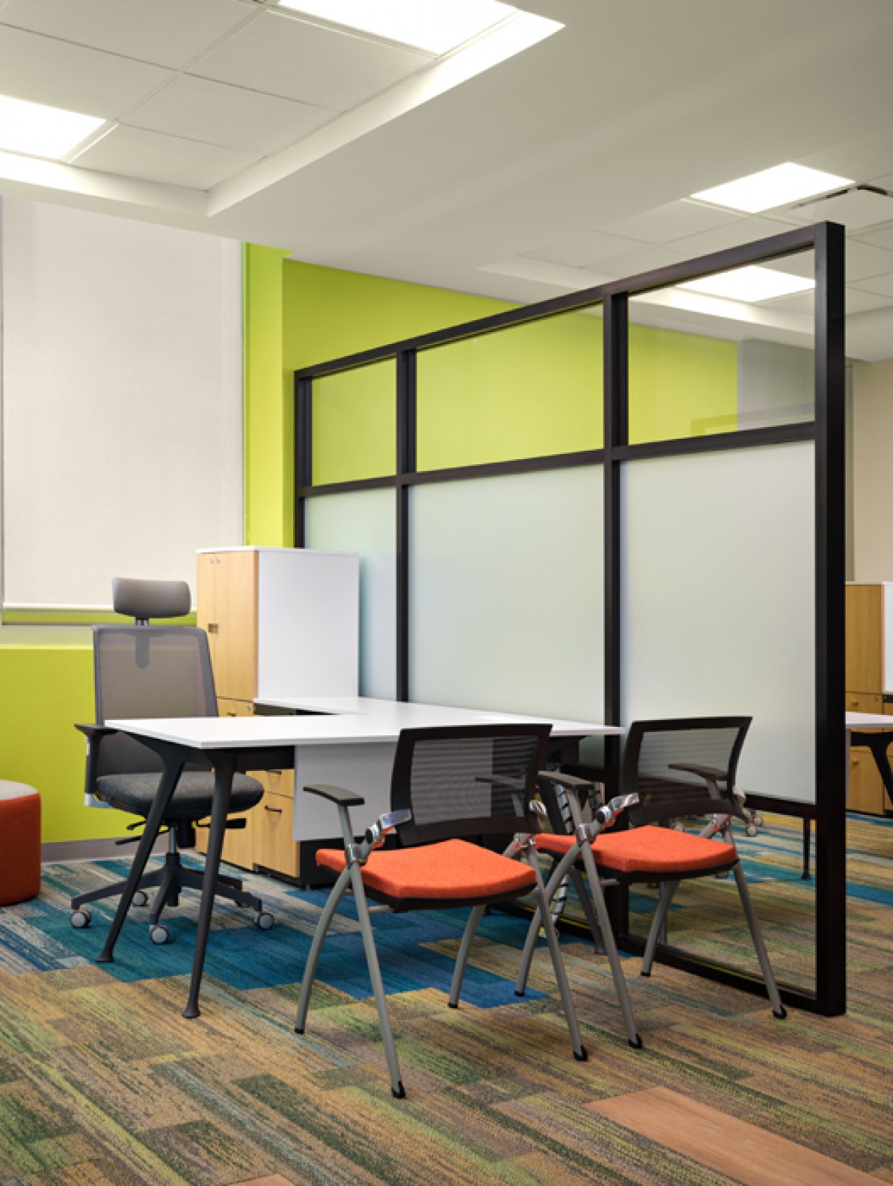 El proyecto se realizó a lo largo de dos meses, en conjunto con el despacho de interiorismo AUZI ARQUITECTURA. Se buscaba renovar el ambiente colaborativo entre usuarios y romper con los espacios opacos y lineales. Al proyectar estaciones modulares en "V" rompemos la monotonía del espacio y generamos una mejor convivencia con los usuarios. Se agregaron elementos verticales para darle contin....