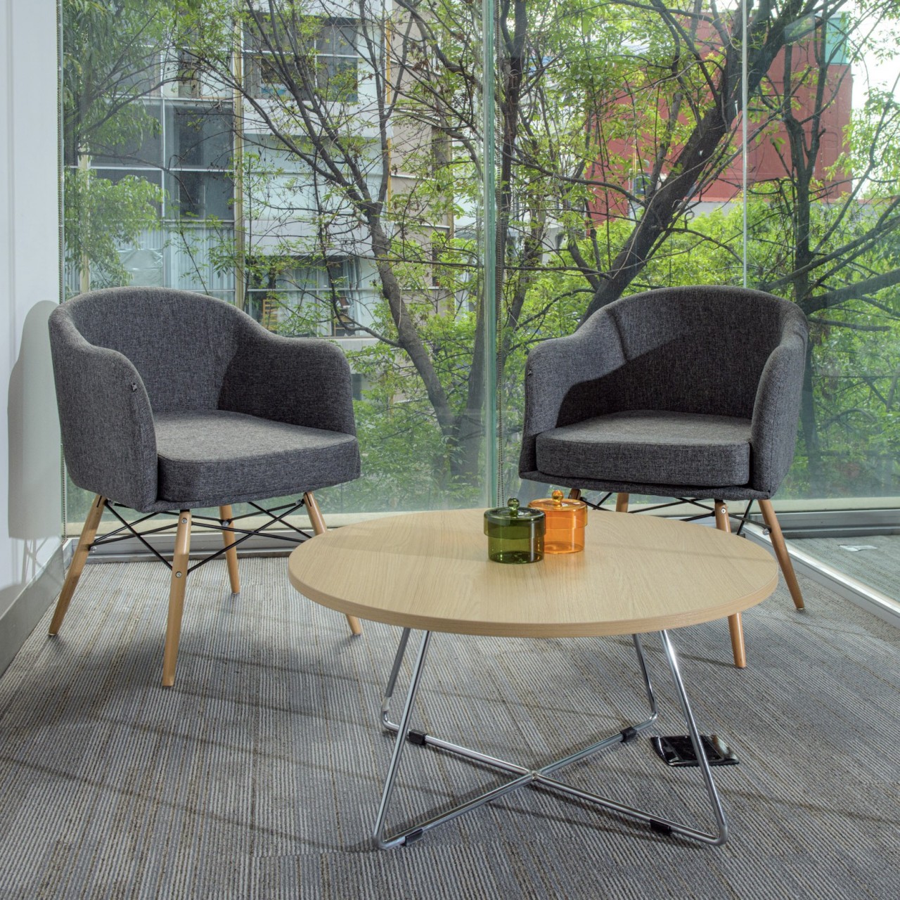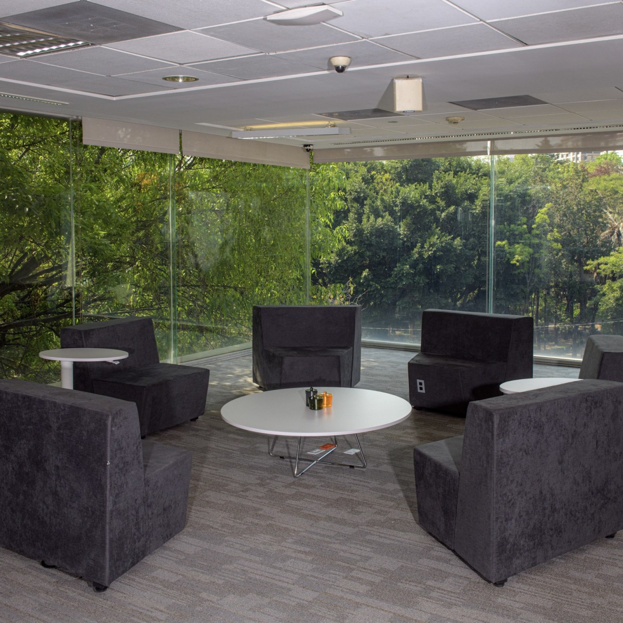 • Salas de reunión informal: Se diseñaron áreas con sillones tapizados y mesas bajas, ideales para encuentros espontáneos o momentos de descanso. La disposición circular promueve la interacción y la comodidad.