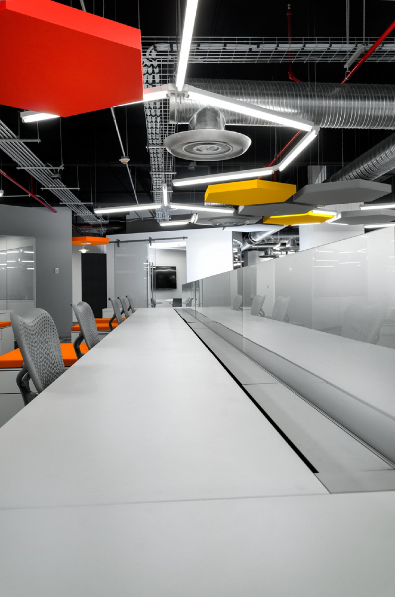 En cuanto a las especificaciones en el diseño, debido al rubro de la empresa, recibimos claras indicaciones de especialistas estadounidenses sobre cuestiones de seguridad. Para conseguir esta mezcla de seguridad y estética, utilizamos materiales diversos de acuerdo a los espacios de la construcción: tablaroca para los muros y plafones, madera estufada para la fachada,cancelería de aluminio y muros de cristal templado para las oficinas de los directores.