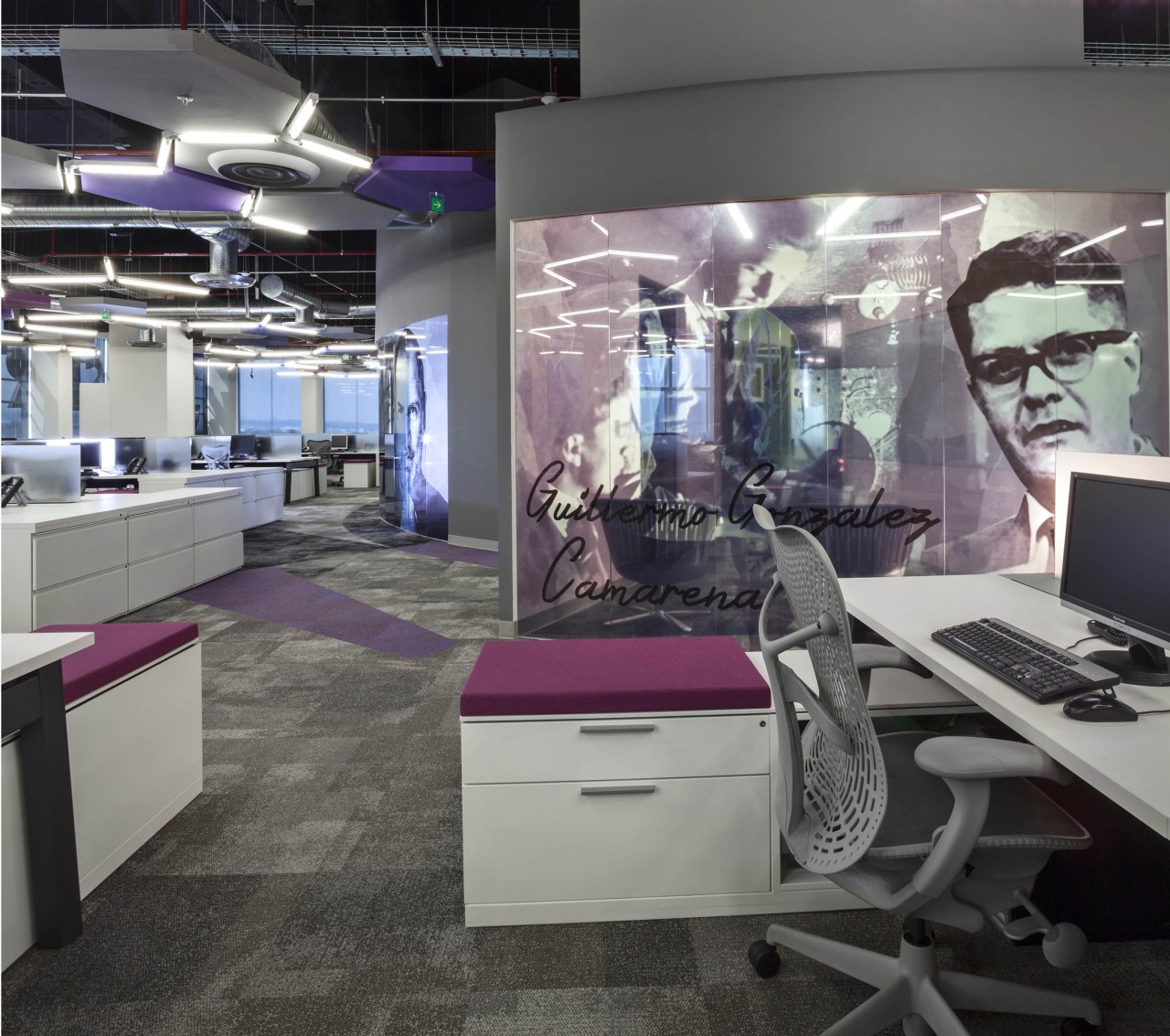 Las oficinas corporativas que construimos para la afianzadora Aserta se encuentran ubicadas al sur de la Ciudad de México, a un costado del Anillo Periférico. Se trató de una remodelación del ciento por ciento de los cuatro niveles en los que funcionaba la afianzadora. Los dos primeros se destinaron a producción, el tercero a ejecutivos y directores y el cuarto al comedor y área de recreación.
