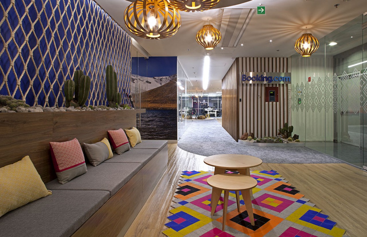 Booking.com es una compañía de servicios en línea de viajes y es propiedad de Priceline. Cada sucursal enfatiza los elementos culturales locales y los destinos vacacionales para la oficina de México.