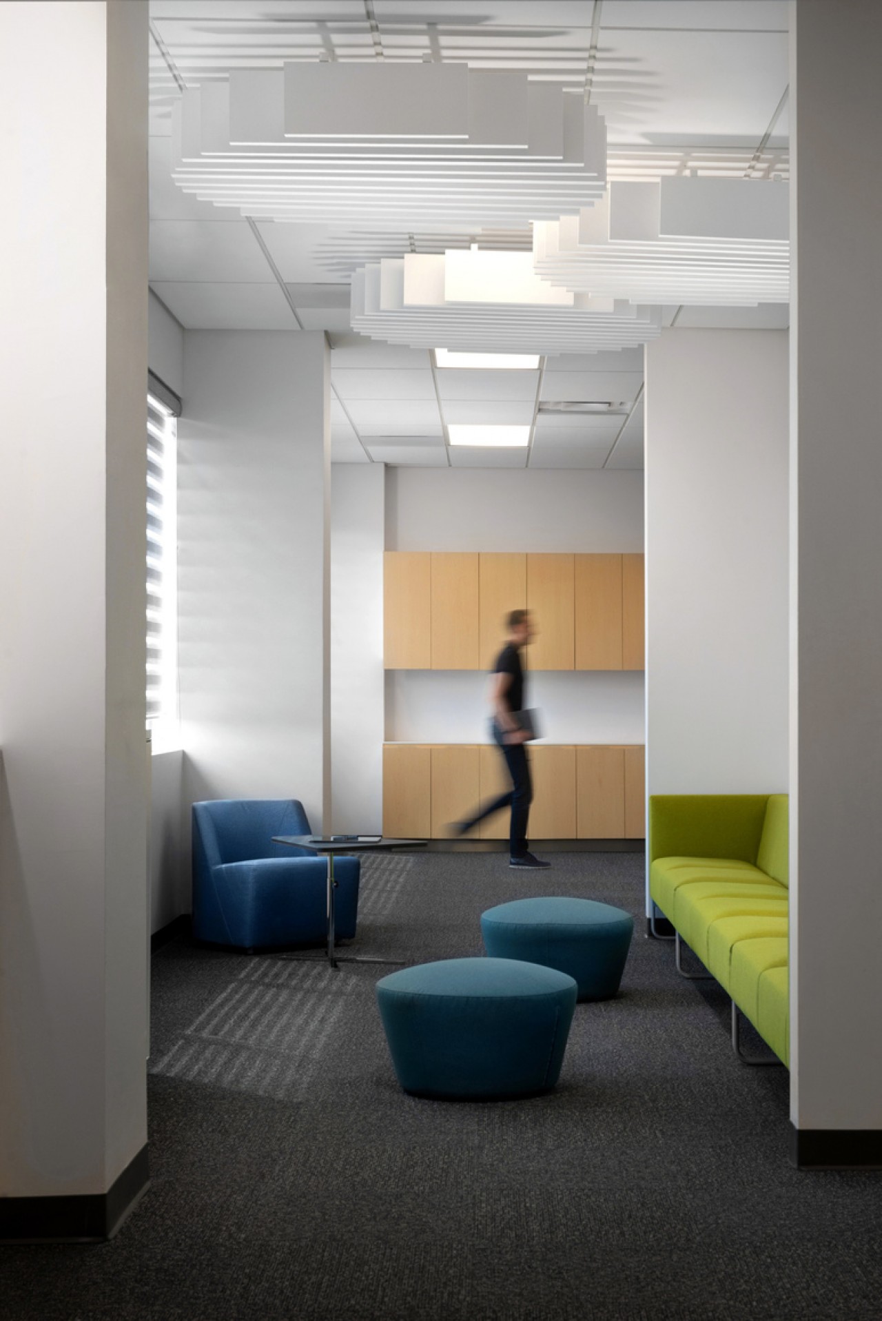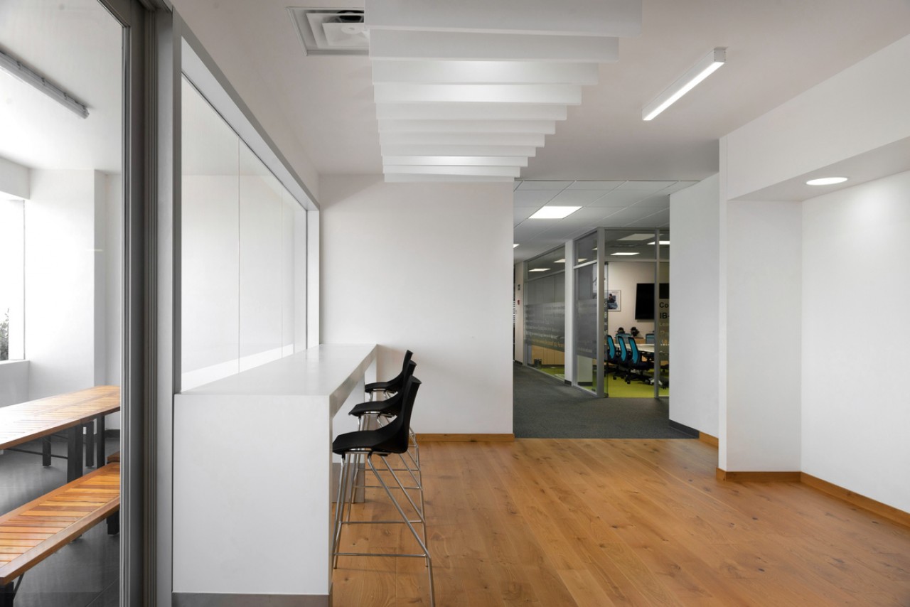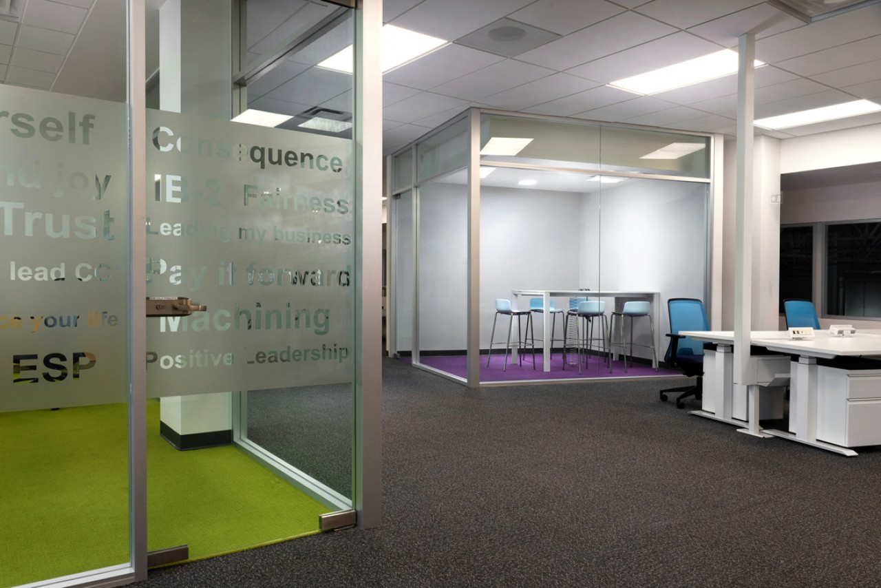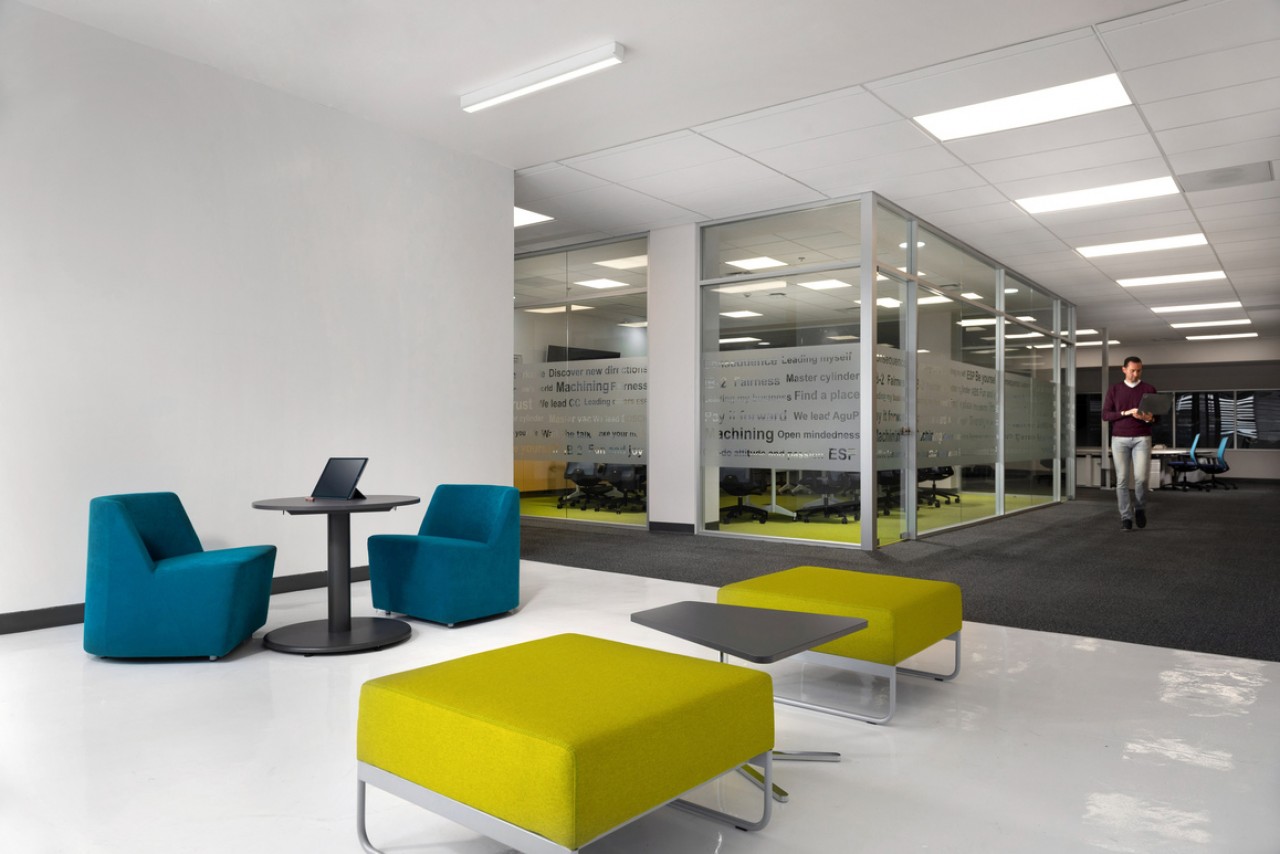El nuevo edificio de oficinas de Bosch integra las oficinas de la empresa y los laboratorios de ingeniería y pruebas de producto. El espacio de oficina se distribuye en un ambiente abierto para promover la colaboración. Algunas estaciones de trabajo tienen caminadoras integradas para correr que fomentan el movimiento y están localizadas dentro de un compartimiento de cristal para no molestar a otros trabajadores. Las oficinas privadas se agrupan en el medio, lo que permite que la mayor cantidad de luz natural entre al espacio. Un lado de la oficina tiene ventanas que dan a la planta de fabricación, lo que proporciona a los empleados una conexión con el producto final.