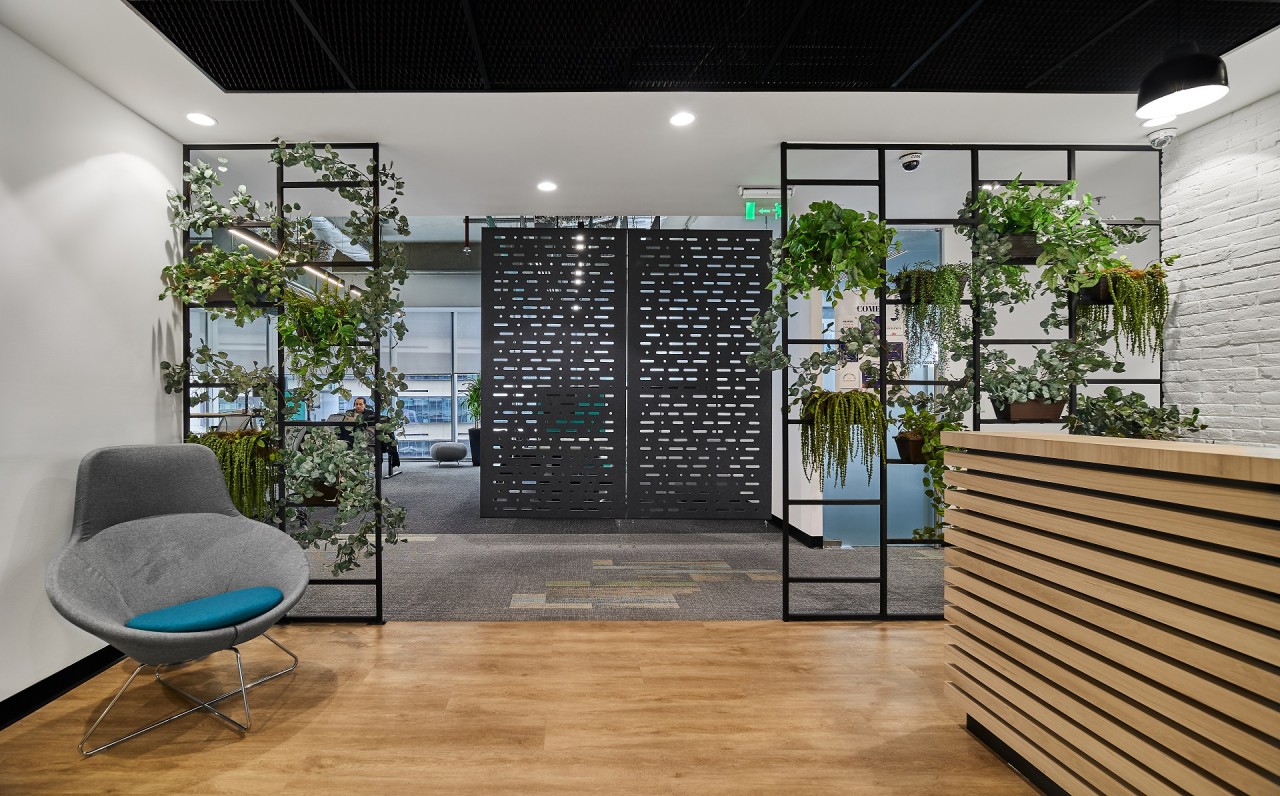 Este proyecto coincidió con un rebranding corporativo, lo que nos llevó a integrar estratégicamente la nueva identidad visual en un diseño que fomentara la colaboración y el bienestar. Apostamos por una oficina Nota: proyecto confidencial abierta y flexible, eliminando jerarquías físicas y optimizando la interacción entre equipos.