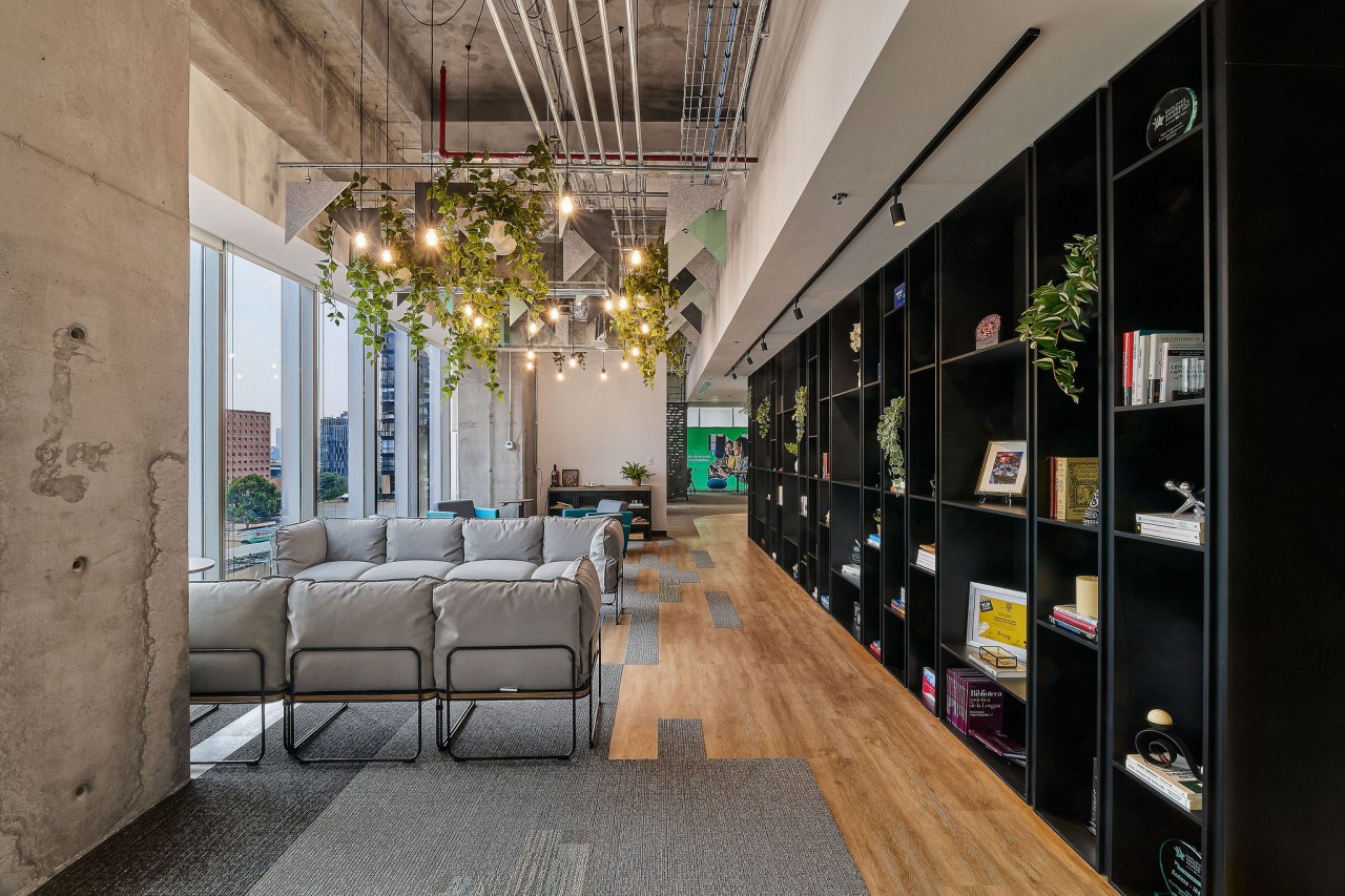 El diseño fusiona un estilo industrial y minimalista, equilibrado con elementos naturales y acentos de color que aportan calidez y dinamismo. Además, incorporamos iluminación natural, mobiliario modular y materiales duraderos para crear un espacio atemporal y eficiente.