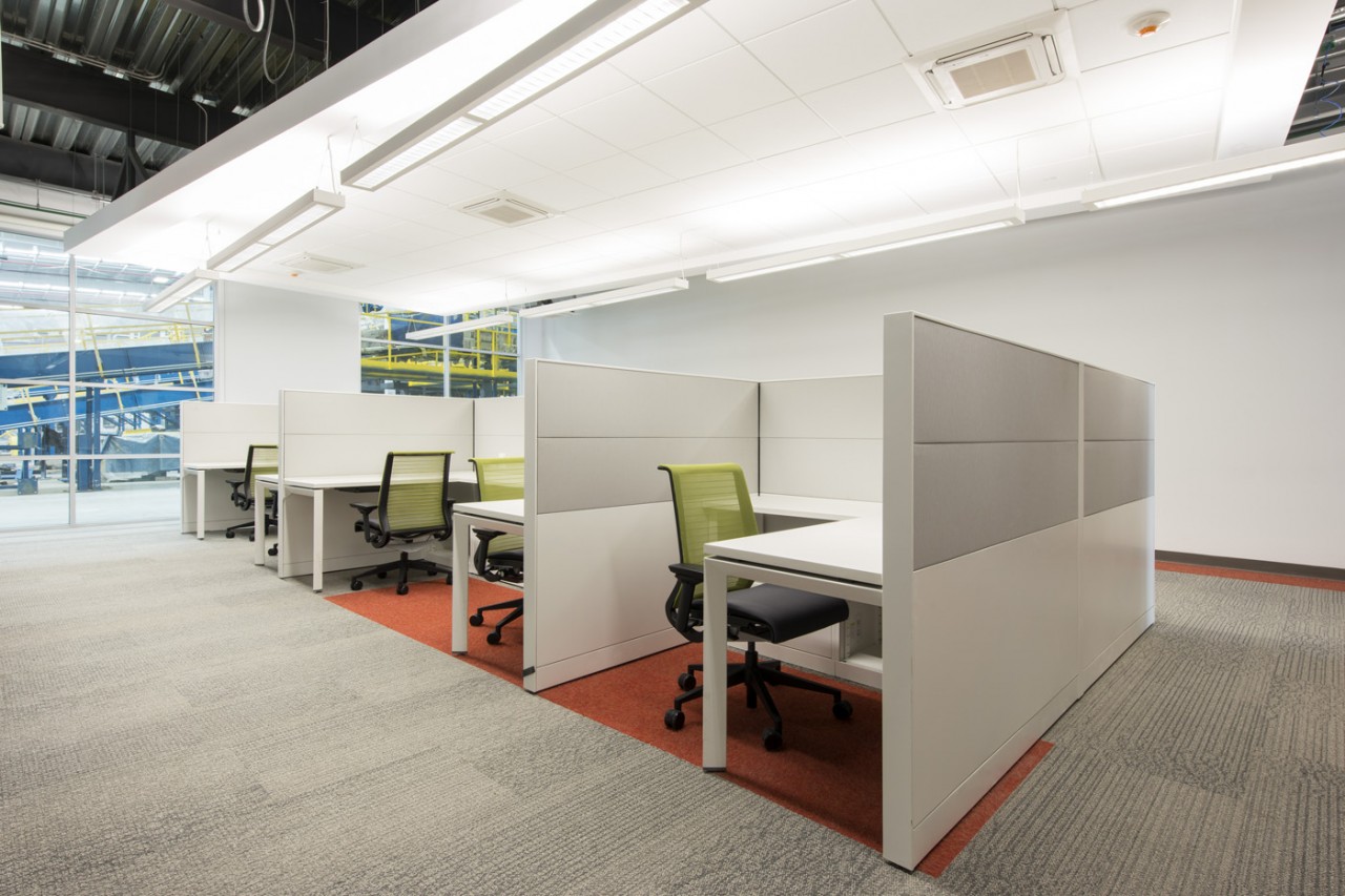 Conceptualmente, se decidió crear un diseño de interiores abierto y flexible, con una paleta de colores que brindara un ambiente luminoso y ordenado, acompañado por detalles lúdicos, como los dos camiones de tamaño real, réplica de los que usa la compañía en su trabajo del día a día. Tuvimos que realizar la obra en un periodo de tiempo muy ajustado, en relación al trabajo que teníamos que hacer. ....
