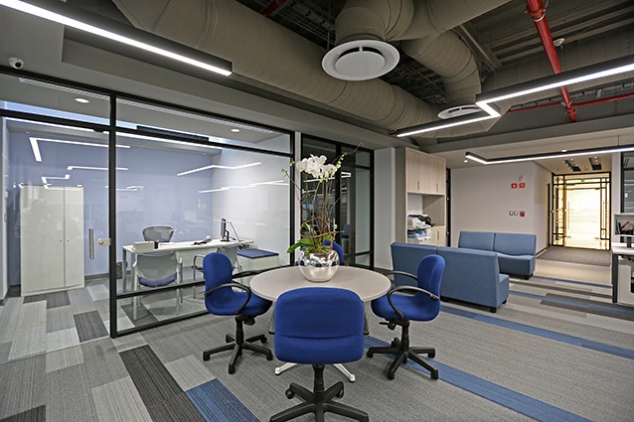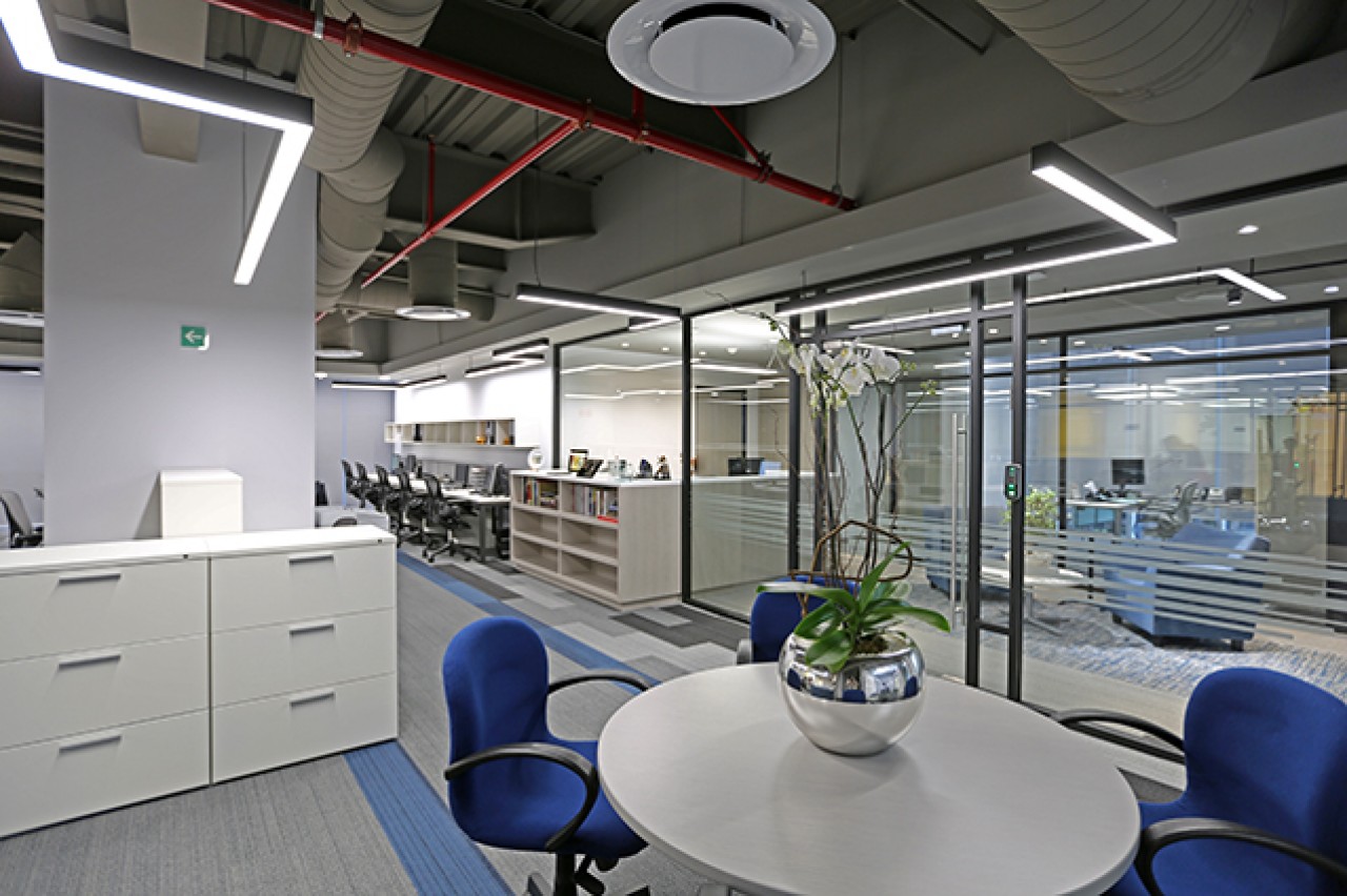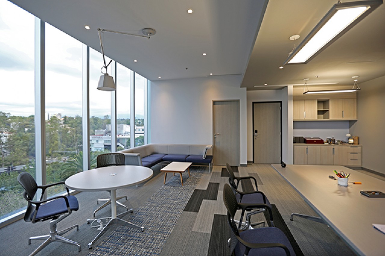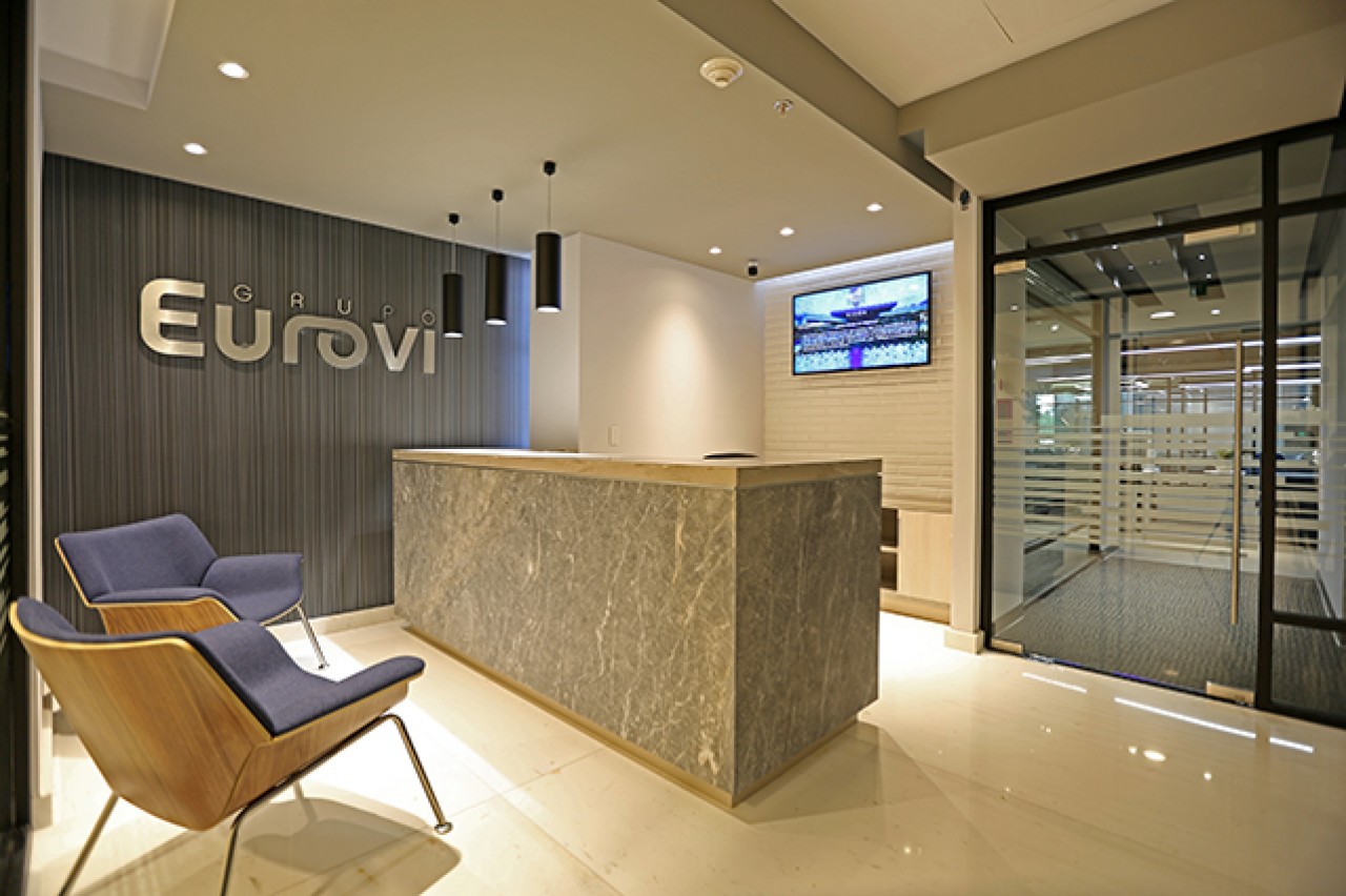 Los requisitos del cliente dictaron que las oficinas en la Ciudad de México para Eurovi, empresa del ramo inmobiliario, se subdividieran en tres áreas: La primera, un área pública, donde además del vestíbulo de recepción y sala para visitas se encuentra el comedor, mismo que hace las veces de un salón multiusos. La siguiente zona es el área operativa, donde está el área de trabajo abie....