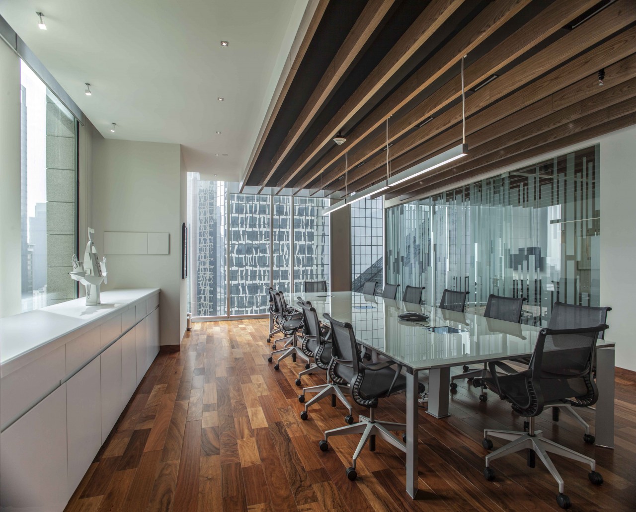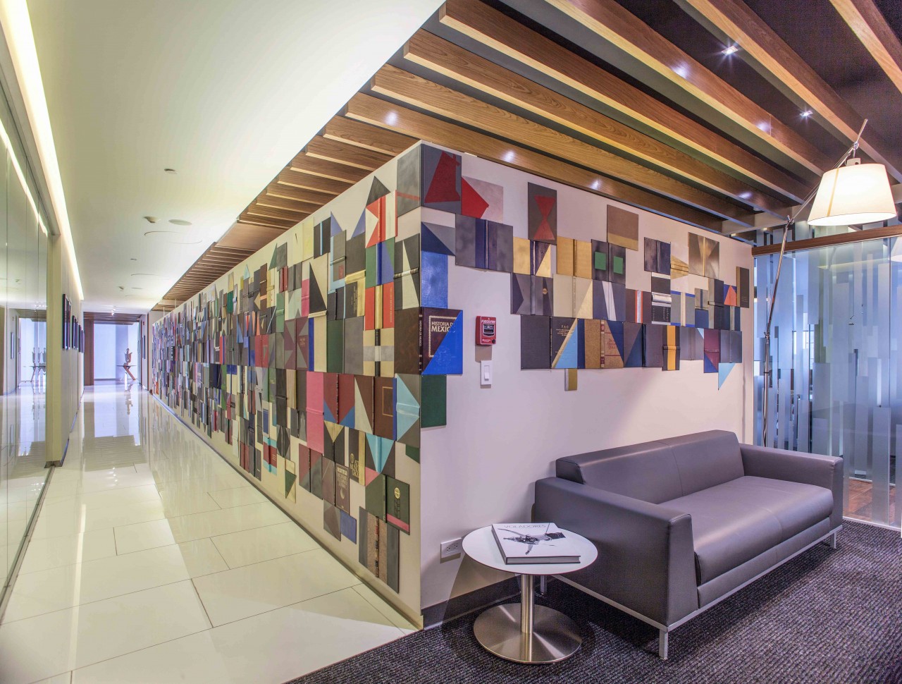 Una firma de abogados que llega de la Ciudad de México para ubicarse dentro la Torre Mapfre con vistas espectaculares hacia el corredor de Reforma y el Ángel de la Independencia. Un muro ciego intervenido por el artista plástico Marco Rauntree a base de libros que representan el conocimiento, nos recibe y divide creando un privacidad del área de abogados y pasantes que por medi....