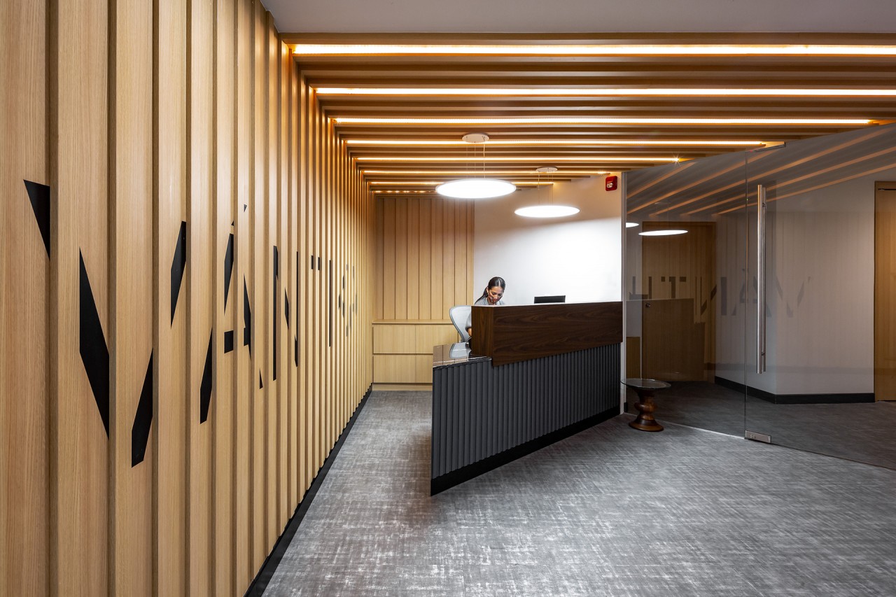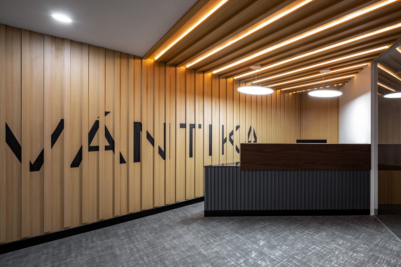 En el área de recepción se implementó un muro principal que puedes ver al ingresar y salir de las oficinas que recuerda tanto al usuario como al visitante donde se encuentra.